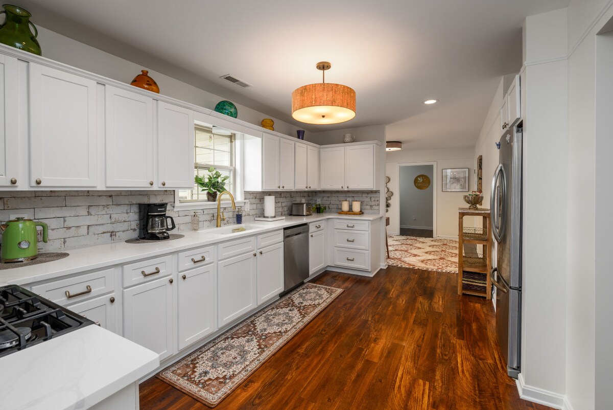 Бунгало з 4 спальнями поблизу історичного селища Колд-Спрінг-Віллидж та виноробні Кейп-Мей. З любов’ю відреставрований будинок з архітектурним шармом, оновленими ванними кімнатами та великою відкритою кухнею та вітальнею/їдальнею. Розташоване в межах 3 миль від пляжів Кейп-Мей. Пральна машина/сушильна машина, сонцезахисний майданчик, тераса, вітальня/офіс і багато паркувальних місць на території. Зворотній бік помешкання площею 1,3 акра забезпечує приватний доступ до велосипедної доріжки Cold Spring з душем на відкритому повітрі та каміном.