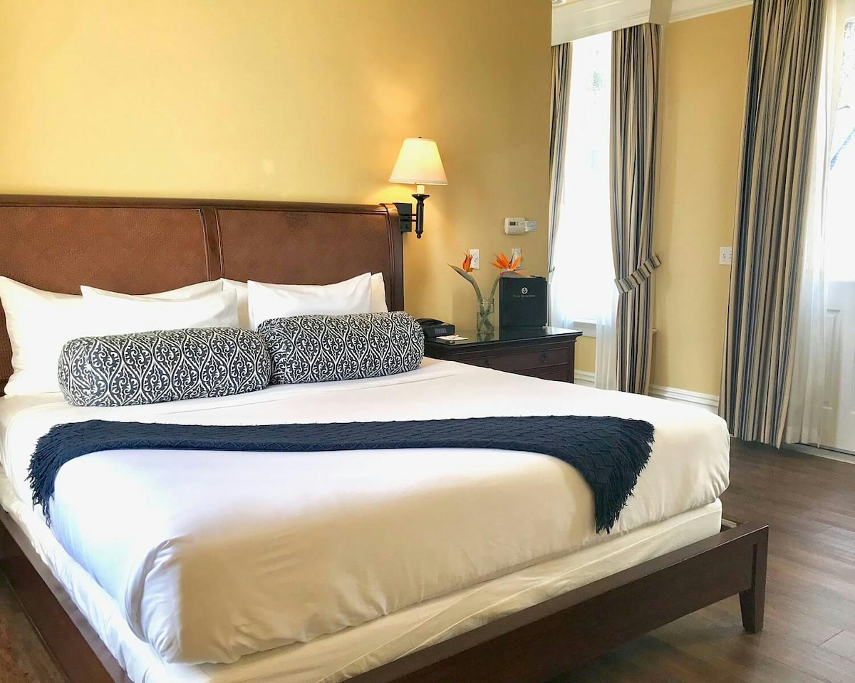 This luxurious King room is ADA Accessible for individuals with mobility and hearing impairments. If you have difficulty learning about or booking our hotel, we invite you to contact us immediately via telephone or via email at westcliffinn@foursisters. com, and our friendly guest services team will gladly assist you. If our ADA accessible guest-room appear to be already reserved online, please contact us via phone for