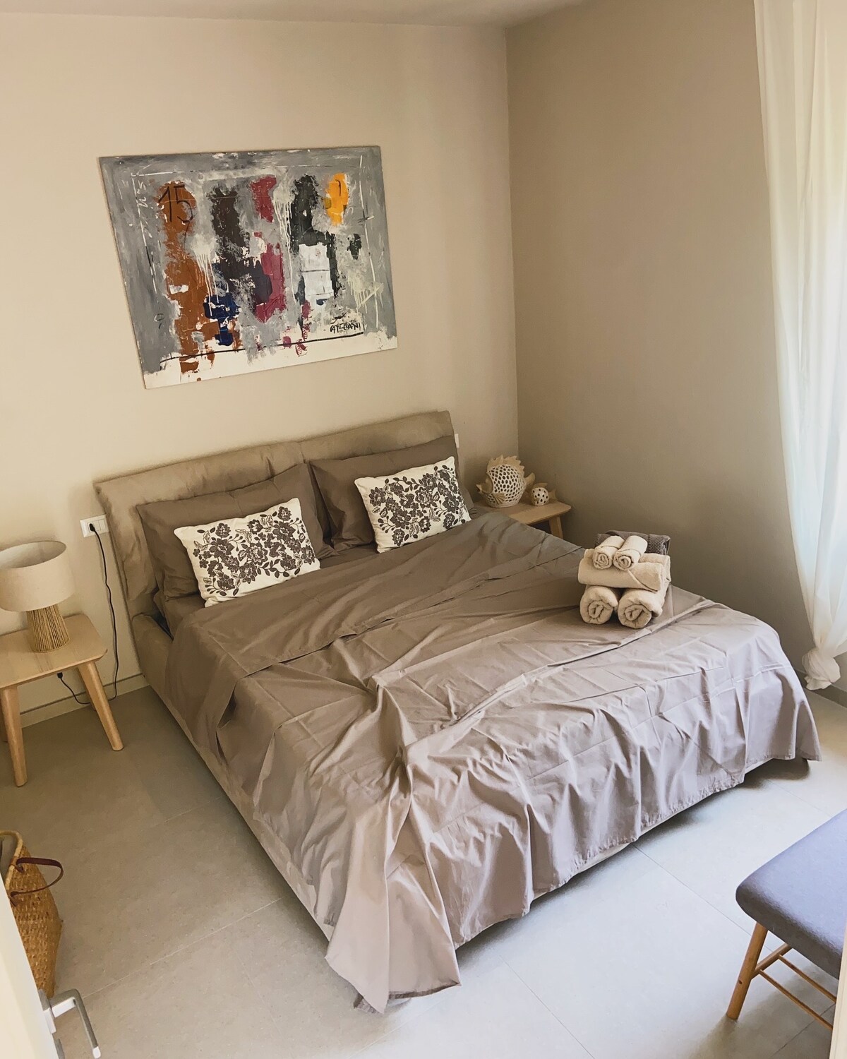 Невелика квартира в тихому зарезервованому районі дикого та чарівного острова. Квартира має відкритий простір, схожий на невелику сільську площу, де можна провести розслаблюючі моменти читання, їжі та аперитивів. Будинок складається з вітальні/кухні, обладнаної побутовою технікою та диваном-ліжком, ванної кімнати з душем та пральною машиною, а також спальні/вітальні/вітальні з двома диванами-ліжками. Відкриті балки з відбіленої деревини. Затишна атмосфера ідеально підходить для відпочинку.