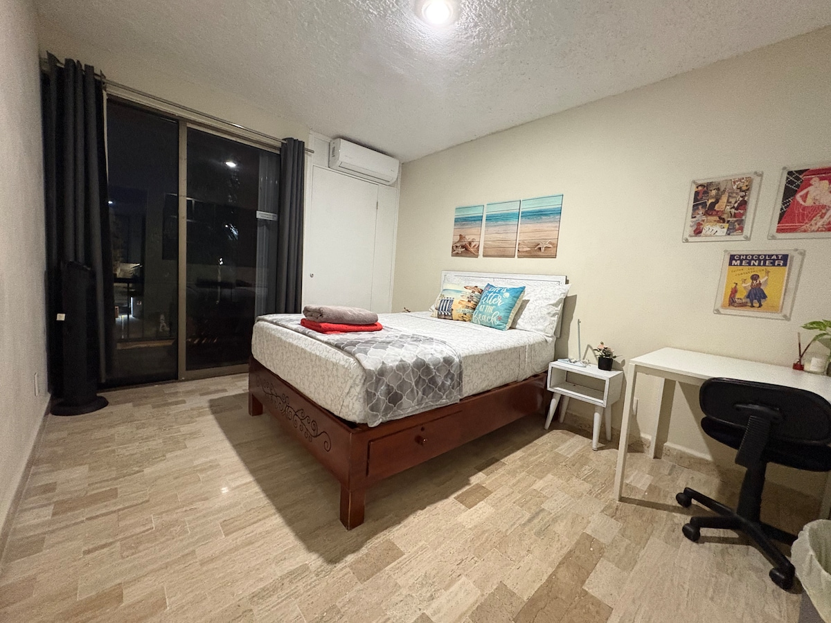 Нещодавно відремонтована студія, розташована безпосередньо в центрі готельної зони Канкуна, з красивою терасою та задихаючим видом на океан поблизу ресторанів та нічних розваг. Студія має сучасний стиль із красивою терасою, де можна провести час і насолодитися краєвидом, а океан звучить з чашкою кави, вином або просто відпочити в гамаку. Вона має два ліжка розміру «queen size», диван-ліжко, добре обладнану міні-кухню та обідній стіл. Також є телевізор із плоским екраном та Wi-Fi.