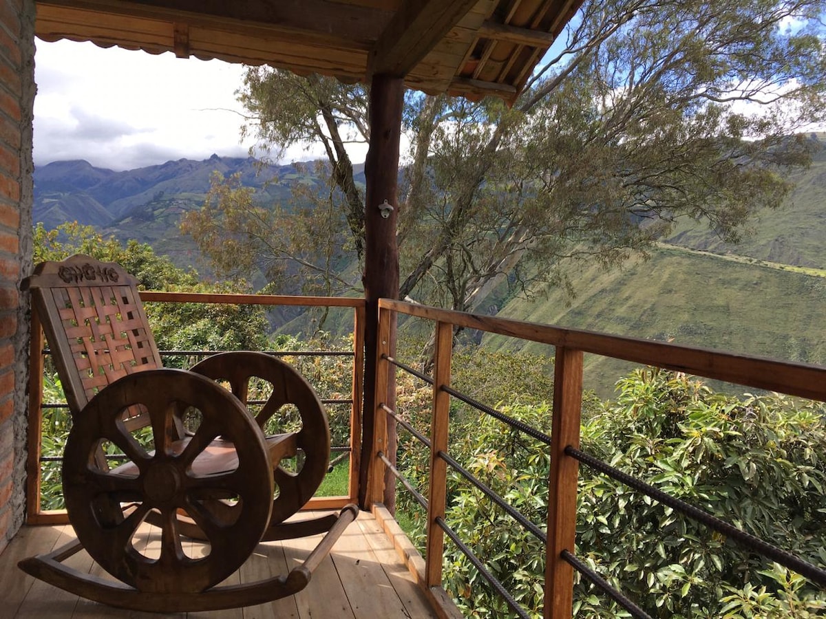 Intag Cloud Forest cabin has a balcony that over looks the cloudforest. Eco-tourism coffee farm with in the 350 acre cloud-forest reserve. Located one and half hours from Otavalo by way of Laguna Cuicocha, in the Intag river valley. Visitors can hike on trails in the cloud forest with waterfalls, go bird-watching, and trout fishing. Perfect for hikers and birders and families. Separate large kitchen and spacious screened dining room common room is for guests use.