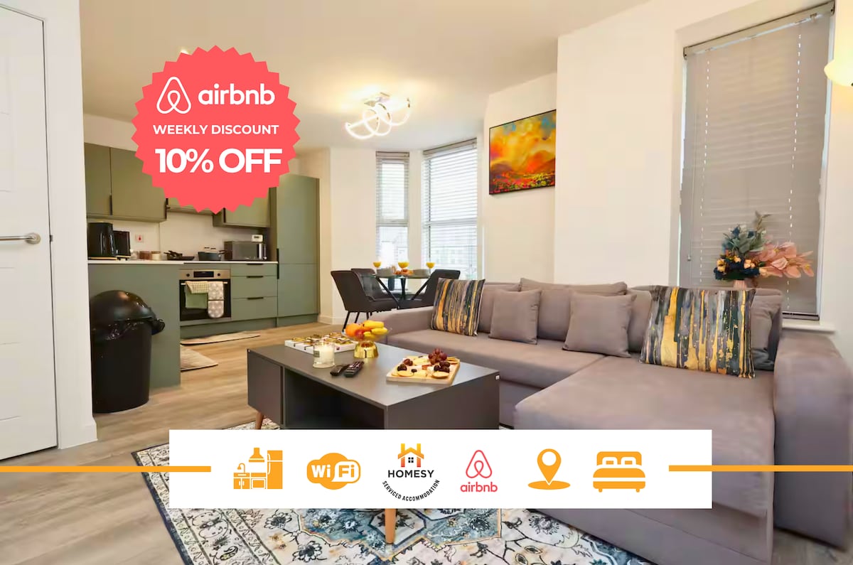 FabAccommodation вітає вас на нашій сторінці Airbnb! - Ідеальний матч для відпочинку, пар або послуг з переїзду. Зв’яжіться з нами перед бронюванням, щоб заощадити на перебуванні! ⭑ЗНИЖКИ на ТРИВАЛЕ ПЕРЕБУВАННЯ⭑ + 28 ночей = мінімальна знижка 20% + 14 ночей = мінімальна знижка 10% ★Найпотужніший і тихий Можна перебувати з★ домашніми тваринами Зона ★робочого місця ★Залізнична станція в декількох хвилинах ходьби ★Парковка доступна всього за 4,80 £/день ★10 ресторанів і кафе поблизу ★Поруч зі стадіоном і ареною ★Торговий центр знаходиться в декількох кроках