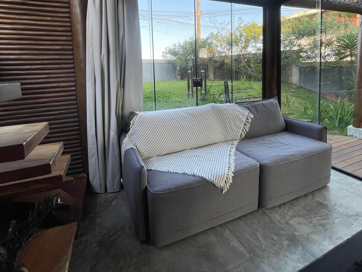 Casa com 150m², para até 4 pessoas, a 1 minuto a pé da praia. Com projeto totalmente customizado, predominância do bom gosto despojado. Aqui, tudo foi feito pensando na sustentabilidade, o que resultou em uma casa com ampla ventilação, luminosidade e aconchego.
