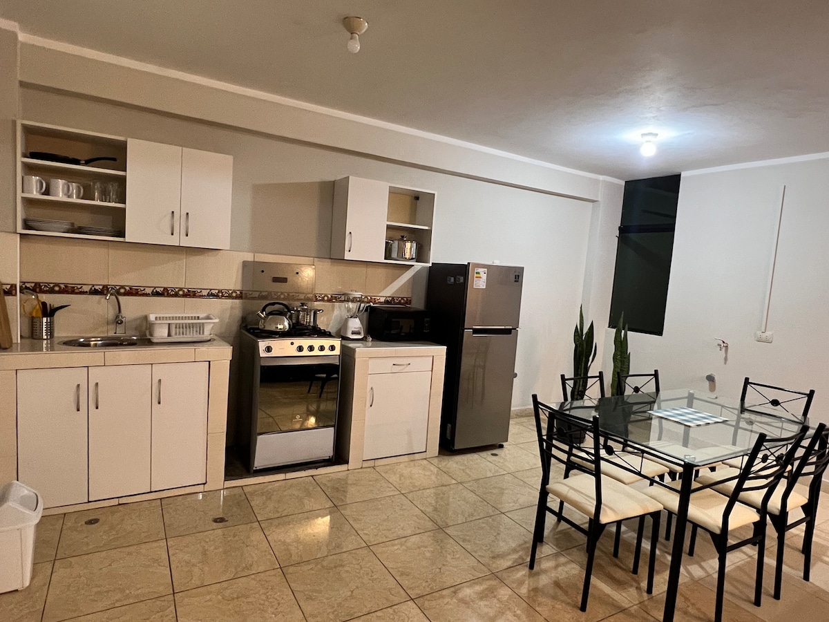 Квартира простора, щоб мати можливість ділитися з сім 'єю та друзями в дуже тихому місці, вона розташована в 10 хвилинах від історичного центру міста Аякучо та в 5 хвилинах від аеропорту. Дуже гарне розташування, недалеко від головних проспектів Окремий вхід у тихий район урбанізації Прогресо. Квартира знаходиться на 1-му повері. Вони можуть зв 'язатися з господарем для отримання будь-якої інформації або вимог, необхідних для приємного перебування