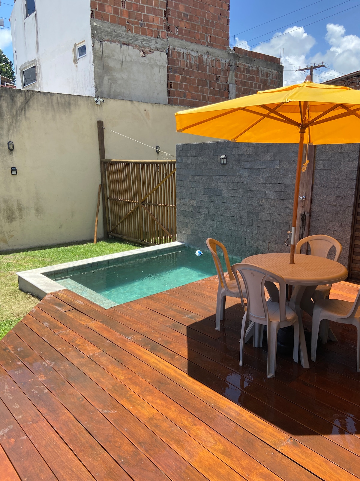 Будинок розташований на пляжі Карнейрос у закритому кондомініумі біля моря з повним комфортом і безпекою цілодобово Всього в 300 м від пляжу море перед кондомініумом спокійне, з утворенням природних басейнів і банним шоу Є 6 апартаментів з кондиціонером та гарячим душем, балкон на 1-му поверсі з гамаками для відпочинку, повністю обладнана кухня, зона відпочинку з приватним басейном, місце для гурманів з зоною барбекю, паркувальні місця в гаражі, Smart TV , Chromecast, швидкий Wi-Fi 600 Мбіт/с