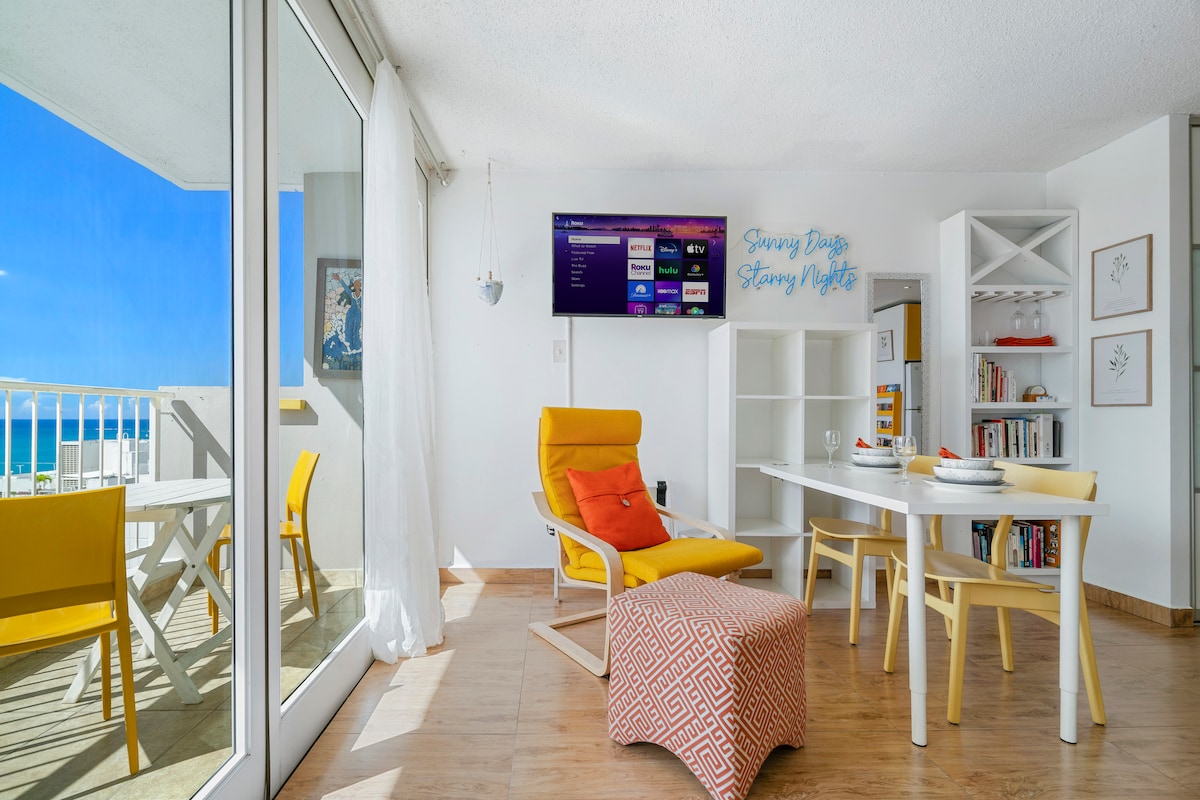 Студія Penthouse Apt. в кондомініумі ESJ Towers в 5 хвилинах ходьби від аеропорту, прямий приватний доступ до пляжу, басейну, нічного життя, ресторанів, торгових центрів, супермаркетів, парків, поруч із усім. Вам сподобається пляж, вид на гори. Ідеально підходить для пар, соло-мандрівників, бізнес-мандрівників, сімей, груп. 1 призначена закрита приватна парковка. Примітка: басейн, ресторан та інші послуги закриті на ремонт. Перепрошуємо за незручності.