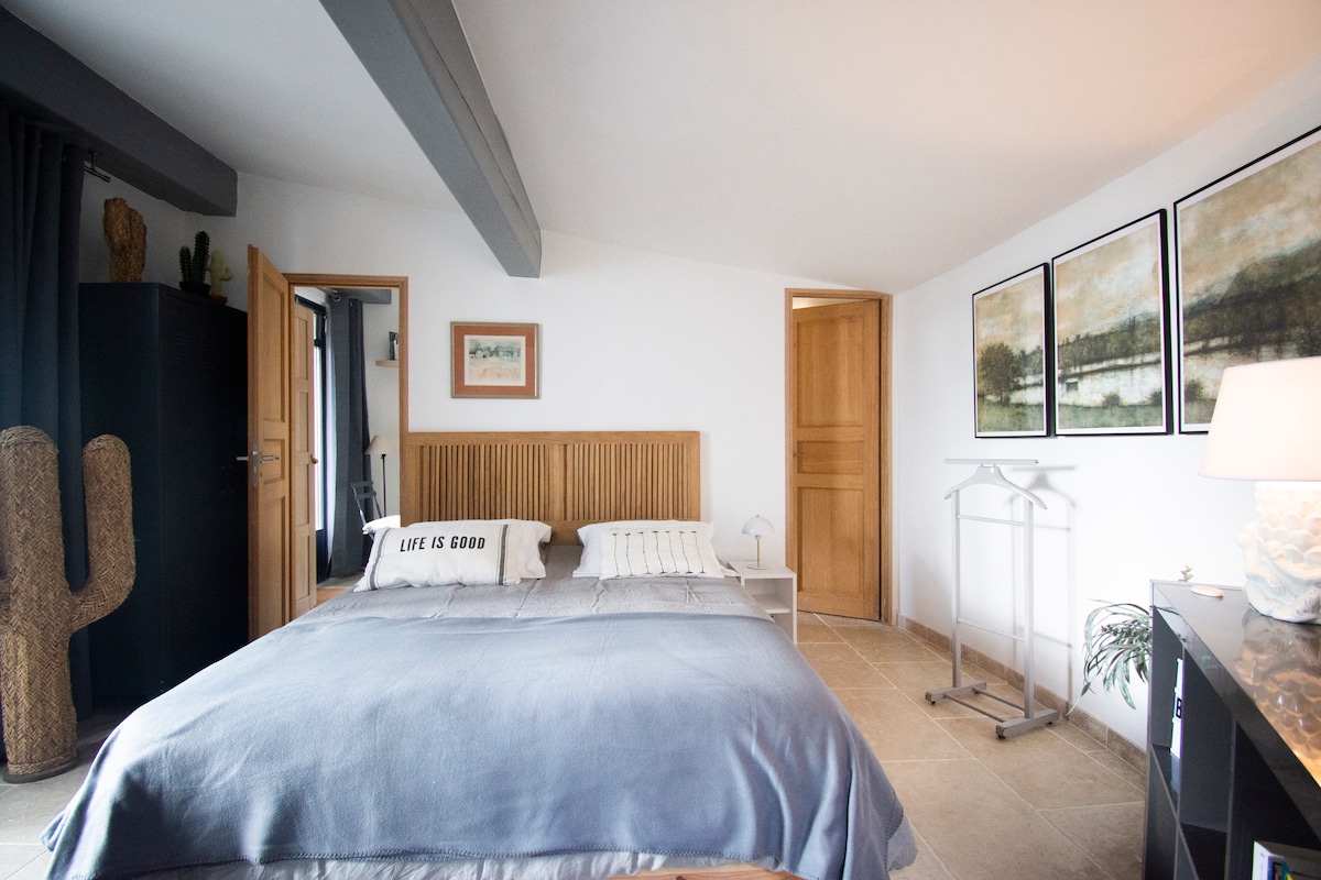 Квартира на першому поверсі, розташована в дуже тихому підрозділі між центром міста (500 м) та морем (1,5 км). Можливість проживання для 4 осіб : одна спальня з ліжком 160 см і диван-кровать 2 людини у вітальні. Велика веранда зі столом та вітальнею з видом на сад. Кондиціонер та повністю обладнане помешкання: кухня (посудомийна машина, індукційна плита, духовка, кавоварка Nespresso, мікрохвильова піч...), 2 телевізори (вітальня та спальня), оптоволоконний Wi-Fi, пральна машина.