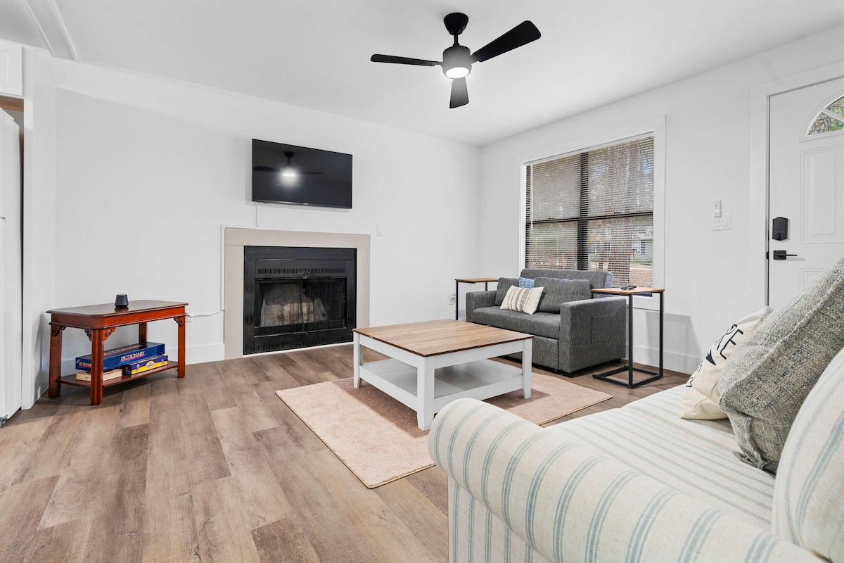 Відпочиньте в Clayton's Place, відреставрованому будинку-мельниці 1910 року з видом на озеро, який ідеально підходить для 4 гостей. Цей будинок, де можна перебувати з домашніми тваринами, має 2 спальні (з великим двоспальним ліжком і двоярусними ліжками), сучасну кухню, спеціальне робоче місце зі швидким Wi-Fi та великий огороджений двір. Насолоджуйтеся спокійним ранком на веранді, вечорами біля багаття та зручною зарядною станцією для електромобілів на території. Спокійний, історичний відпочинок всього за кілька хвилин від Мебейна, Берлінгтона та Університету Елона.