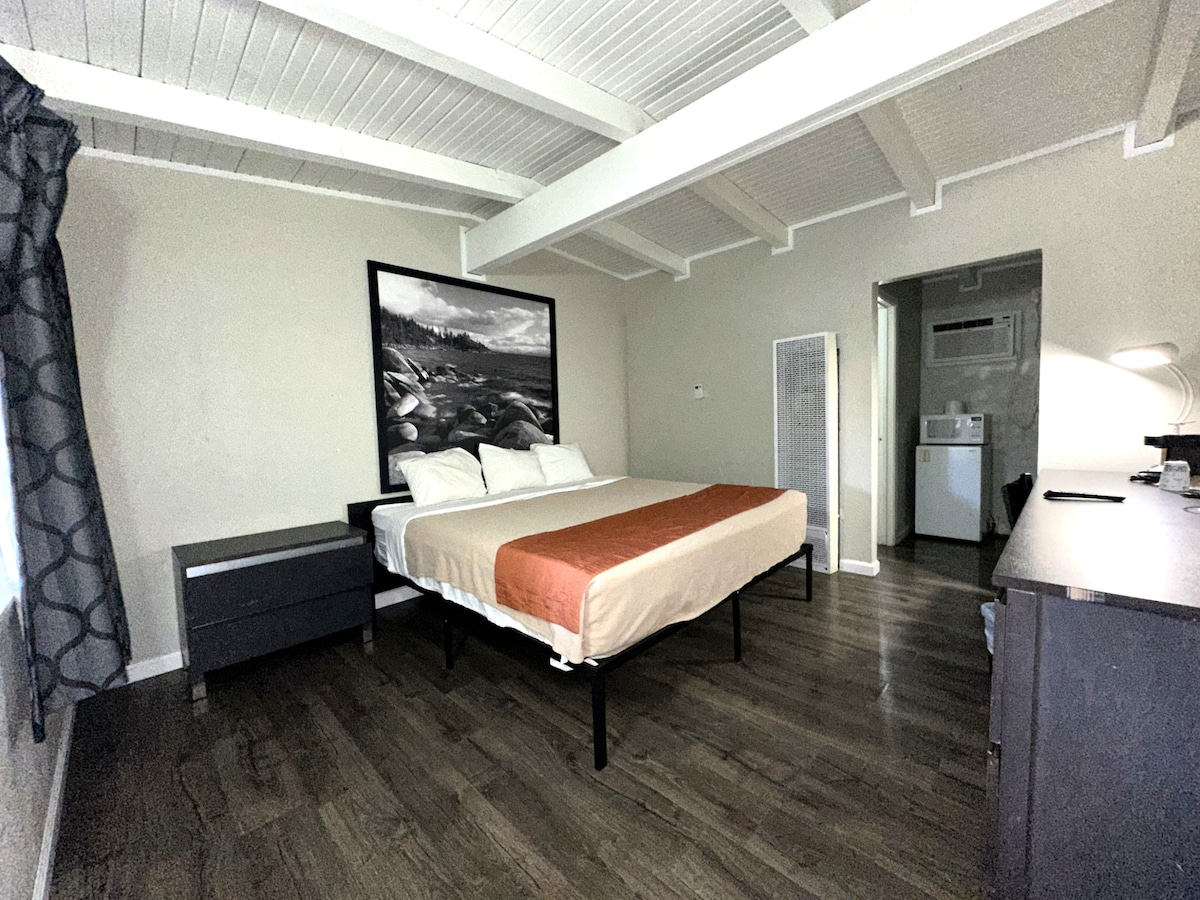 Свіжий, компактний і близький до всього.Цей сучасний двомісний номер ідеально підходить для індивідуальних мандрівників або пар, які хочуть комфорту без зайвих речей. Прогуляйтеся до району Хевенлі-Вілледж менш ніж за 10 хвилин, дістаньтеся казино за 15 хвилин і відвідайте найкращі ресторани, бари та кав’ярні Тахо, що знаходяться всього за кілька кроків. У вартість входить окрема ванна кімната, міні-холодильник, мікрохвильова піч, кавоварка Keurig, смарт-телевізор і швидкий Wi-Fi. Чисто, просто і саме там, де ви хочете бути.