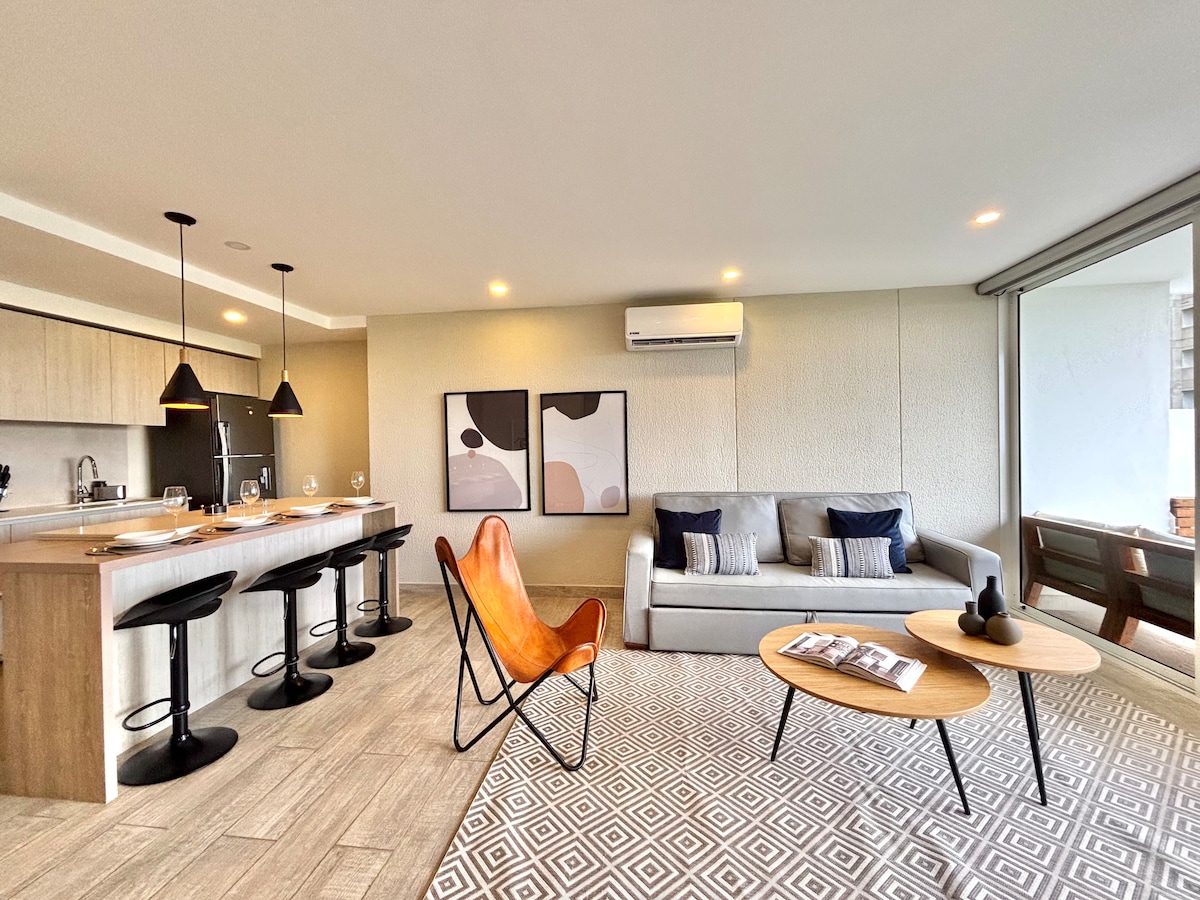 AKA Suites Cartagena пропонує цю повністю мебльовану квартиру преміум-класу в Бокагранде. Зручність і комфорт стикаються з вишуканим, сучасним стилем. Відкрийте для себе стиль із гранітними стільницями, порцеляновою плиткою, килимом у ліжку та балконом на свіжому повітрі, де ви з нетерпінням чекатиме на схід сонця за допомогою ранкової чашки кави.