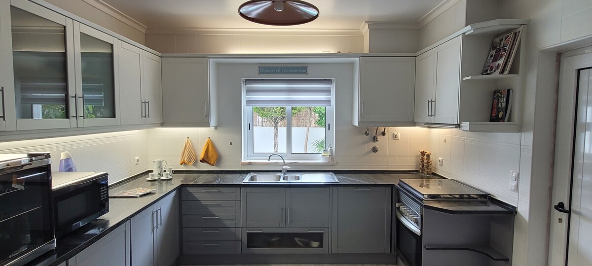 Вілла з широким садом і басейном. У тихому і зарезервованому районі, оточеному природою. Всього в десяти хвилинах ходьби від пляжу Лагоа-де-Альбуфейра і недалеко від знаменитого пляжу Меко. Це правильне місце для тих, хто досить сміливий, щоб кинути виклик морським хвилям або насолодитися спокійною лагуною поруч із океаном. Сад і будівля були реконструйовані в січні 2020 року. Помешкання та околиці підходять для сімей з дітьми. Весь доступ до помешкання, за винятком гаража та інженерної кімнати. Ми готові допомогти вам щодня з 9:00 до 21:00 (GMT). Пляж Lagoa de Albufeira - це орієнтовний природний скарб у столичному районі Лісабона. Це спокійне середовище, де зустрічаються пляж і ліс. У районі є кілька зелених зон з ігровими майданчиками. Дороги широкі і добре утримуються. До пляжу є велосипедна доріжка. На пляжі ви знайдете бари та ресторани, які є чудовим місцем для обіду, в найспекотніші сонячні години або допоможуть вам охолодитися, насолоджуючись заходом сонця, коли ви скуштуєте багаті смаки свіжої риби, виловлену місцевими рибалками в Сезимбре. Поруч, у селищі Альфарим, є паливні насоси, аптеки, міні-маркети, магазини та місцевий ринок свіжих продуктів. Пересування по району можна здійснювати пішки, на велосипеді або автомобілі, щоб мати доступ до інших туристичних об 'єктів та місцевих підприємств.