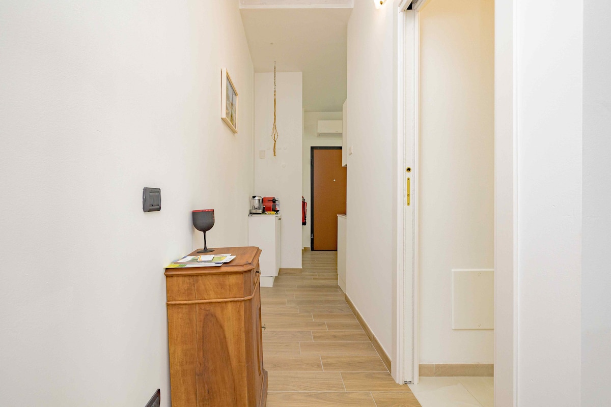 Повністю відремонтована студія, що складається з: вітальні з телевізором та двоспальним диваном-ліжком, спальної зони з двоспальним ліжком, окремої ванної кімнати з душем та пральною машиною, обідньої зони з обладнаною кухнею, чайника, кавоварки, холодильника, безкоштовного Wi-Fi, сейфа Перший поверх з окремим входом і внутрішнім двориком, паркувальне місце. Примітка. З 1 квітня 2025 року муніципалітет видав податок на проживання в розмірі 2 євро за ніч на особу, який сплачується в помешканні готівкою .