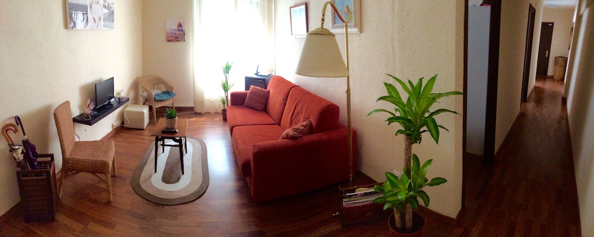 Чудовий перший поверх з індивідуальним входом та приватним патіо. Повністю оновлений інтер 'єр, прикрашений стилями змішування мімів, новими меблями та реставрованими предметами. Він складається з двох прикрашених зі смаком кімнат, ванної кімнати з душем та відкритого простору, включаючи: обладнану кухню, офіс з необхідним посудом та вітальню з телевізором. Відкритий майданчик зі штучної трави з кокетливими куточками. Безпечний і тихий район дуже близько до зупинок громадського транспорту і безкоштовної парковки в околицях.
