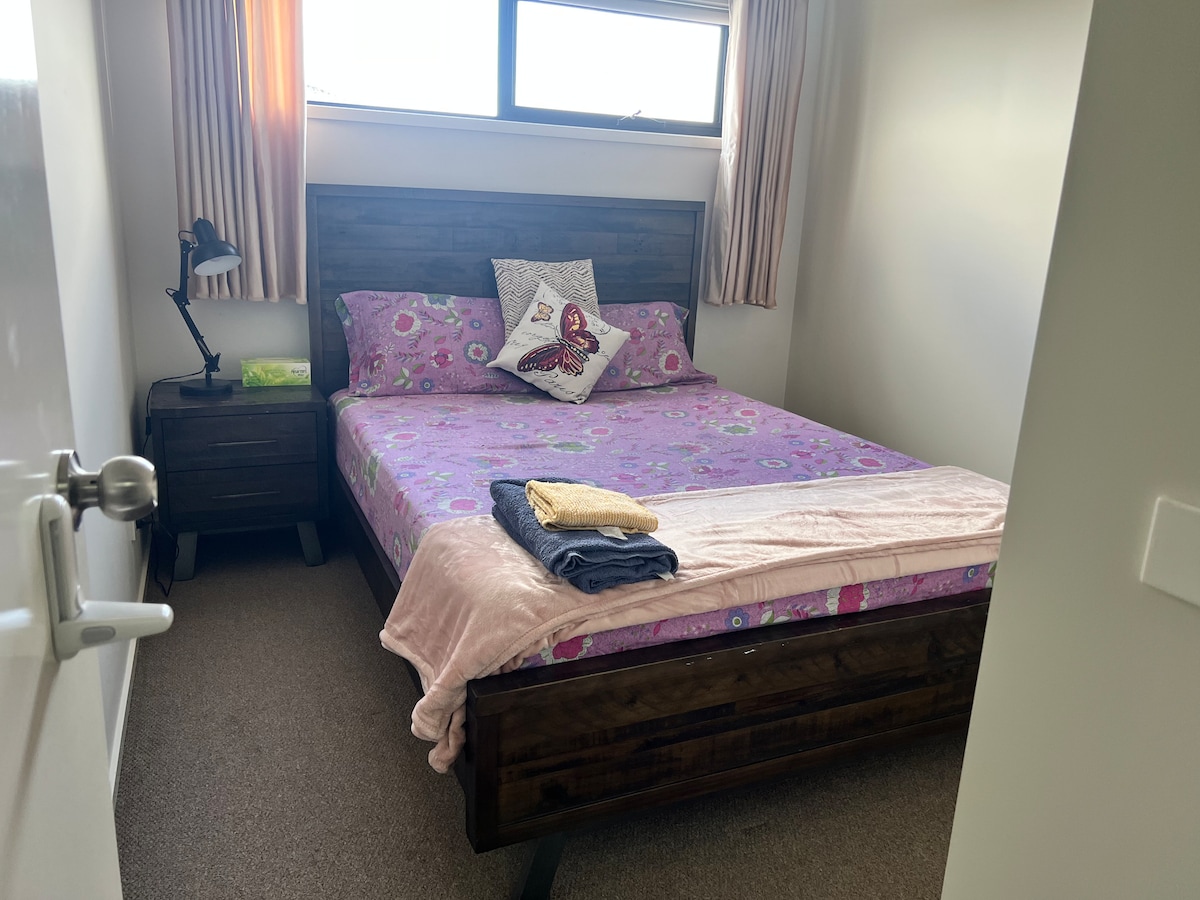 Вибір зручного ліжка: Кімната 1: 1 двоспальне ліжко Або Кімната 2: 1 ліжко queen-size Передня половина будинку буде вашою, щоб розвантажити та розслабитися. Ванна кімната з душовою кабіною та ванною, окремим туалетом та пральною машиною. Дуже функціональна кухня з островом і всім посудом, столовими приладами, посудом, обіднім столом і стільцями для 6 осіб. Дивани. Beanbag. Wi-Fi. Netflix. PS4, 55-дюймовий телевізор з Coles, McDonald 's, сервопривід і ресторани всього за 2 хвилини ходьби по дорозі.