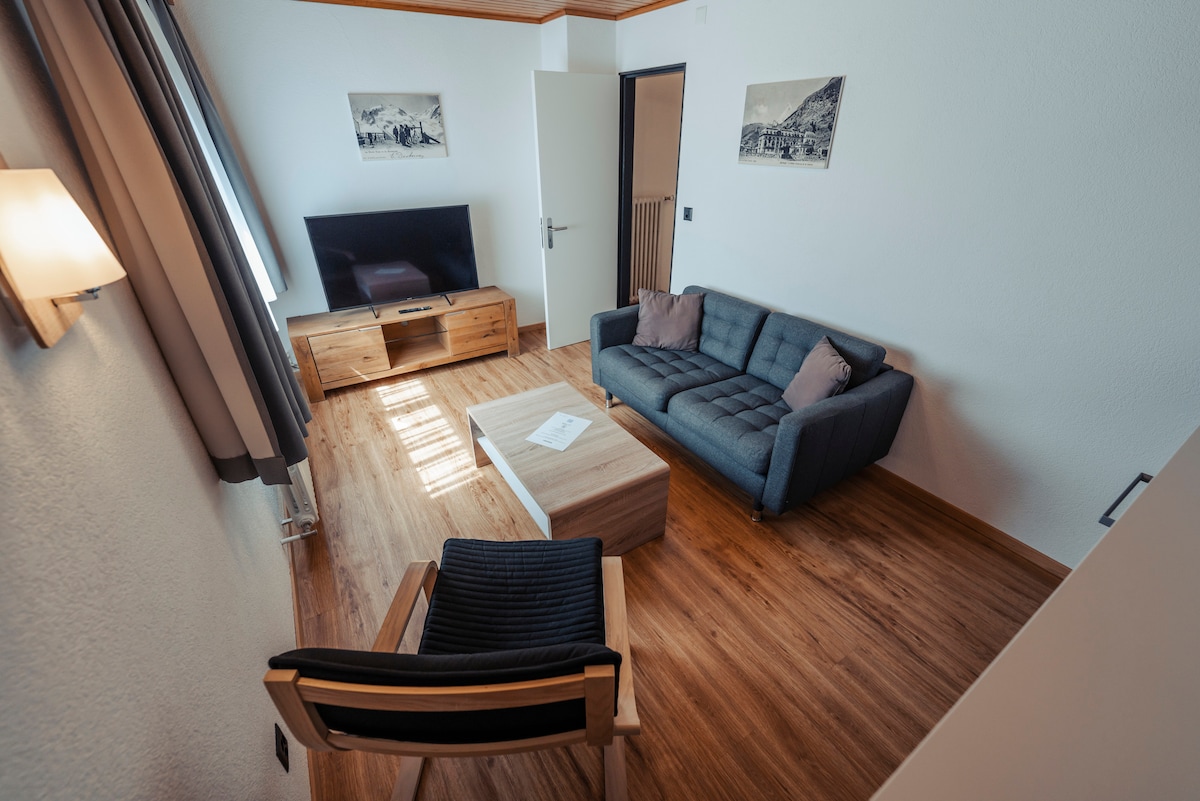 2-room apartment of 65 m2 on 3rd floor, tastefully furnished: entrance hall, dining area, living / sleeping room with 2 fold-away beds (90x200 cm), TV; 2 balconies (to the south with beautiful view of Matterhorn with furniture and to the west); 1 bedroom with 1 double bed (2 90x200 cm). Kitchen: oven, dishwasher, 4 ceramic glass hob hotplates, microwave, freezer, electric coffee machine. Bathroom with bathtub / shower WIFI. Quiet area, 10 min from the center, 6 from plants.