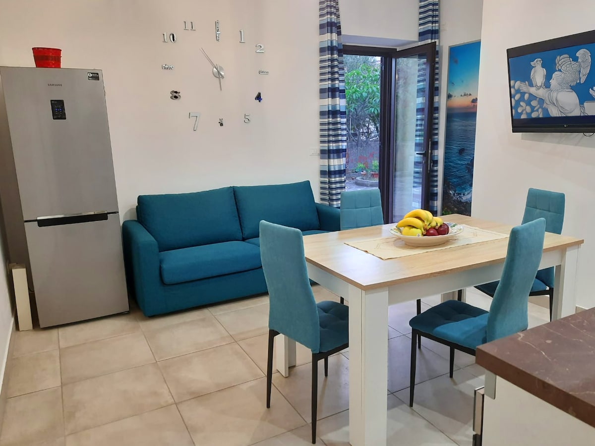 Затишна квартира на першому поверсі, ідеально підходить для спокійного відпочинку. Всього в 300 метрах від пляжу і недалеко від підводних крил на Еолійських островах є всі зручності: кондиціонер, двоспальна спальня, крісла з диваном-ліжком та диваном, кухня, обладнана посудом, пральною машиною, постільна білизна (простирадла та рушники). Розташована в тихому та величному місці, вона ідеально підходить для пар, сімей або невеликих груп, які шукають відпочинку та зручності всього в декількох кроках від моря.