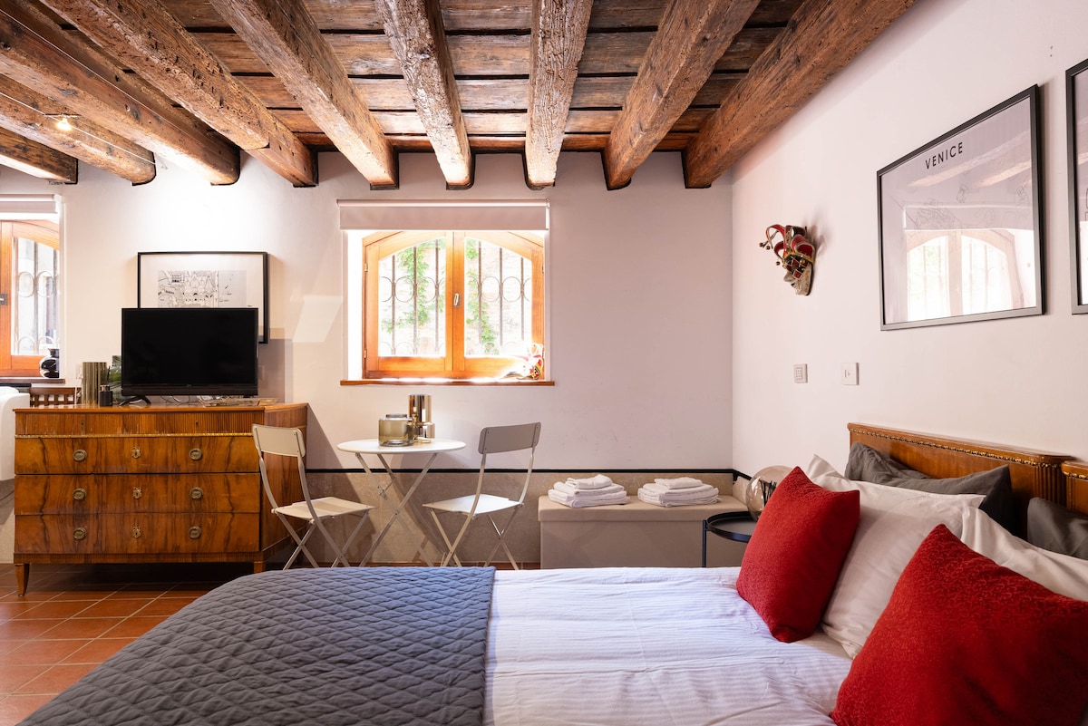 Лише в 25 метрах від Гран-каналу та зупинок вапоретто чекає на вас дивовижний, наповнений світлом лофт. Це затишне помешкання з видом на сад і невелику терасу на території Венеції. У вітальні є двоспальна спальня та диван-ліжко на 2 персони. Квартира ретельно прибирається, дезінфікується та дезінфікується озоном.