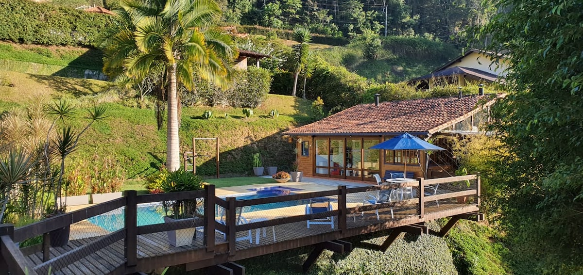 МИ ПРАЦЮЄМО ЩОНАЙМЕНШЕ 2 НОЧІ! ПРОГРЕСИВНІ ЗНИЖКИ ВІД 3 НОЧЕЙ! Прокиньтеся з захоплюючим видом на атлантичний тропічний ліс у супроводі спів птахів! Сучасний будинок, укомплектований і з «штрихом» дизайнера та пластикового художника D.Moraes! Ви матимете приватність і безпеку в горах!