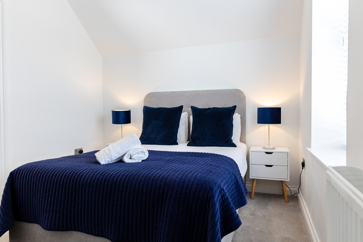 Це стильне помешкання ідеально підходить для перебування в групі з двома двомісними кімнатами та двомісним диваном-кроватьом, який вміщує до шести осіб. 2-хвилинна прогулянка до замку Кардіфф, стадіону Князівства та центру міста. Просторі високі стелі по всій квартирі та висококласне оздоблення. Чудове місце для розміщення для відвідування Кардіффа та Південного Уельсу. 5 хвилин ходьби до Центрального залізничного вокзалу Кардіффа. Доступна для довгострокової оренди та для професіоналів. Доступна безкоштовна парковка.