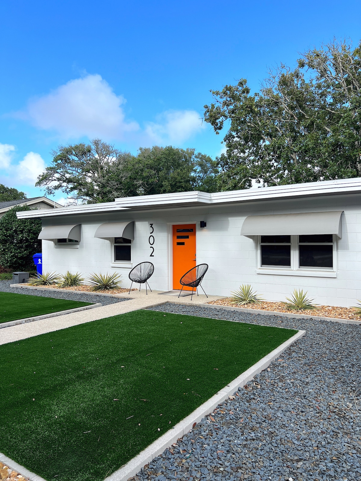 Welcome to our Guesthouse...2-Minute Walk to Ocean / Direct Beach Access. Cozy house with charming furnishings. Full service kitchen with refrigerator, microwave, stove, K-Cup coffee maker and toaster, queen bed and comfy furniture in the living room. Bath w tub/shower. Flat screen TV - YouTube TV/WiFi included. Outside shower for your use while you are visiting with us. Private deck to grill your food. Close to shopping and restaurants. 2 person maximum. 2 dog maximum.