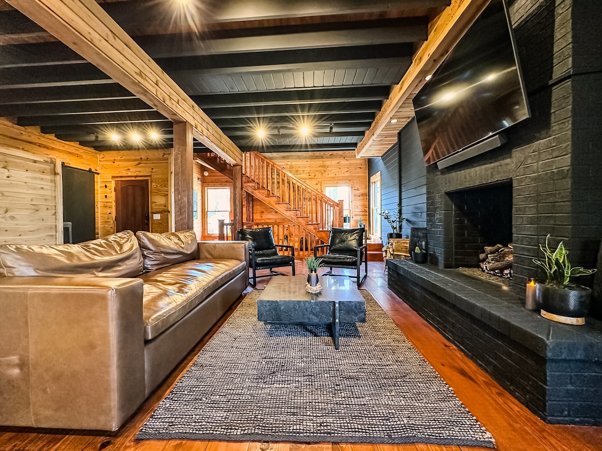 Just an hour from RTP, this sunset lakefront retreat is designed around the view, with expansive glass walls that bring Hyco Lake right into the living space. Spend the day on the water—launch a kayak, cast a line from the private dock, or relax by the lake—then unwind in the hot tub or around the fire pit as the sky turns gold. Perfect for romantic getaways, girls' weekends, or a peaceful midweek reset. Fast WiFi makes remote work easy, with on-site EV charging.