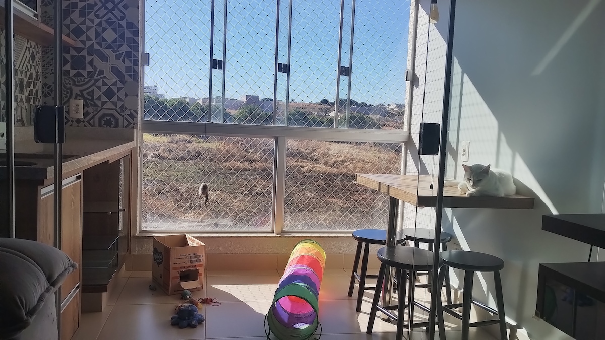 Добре розташована квартира поблизу DMIC (поблизу Маріасібіша та в 2 хвилинах (на автомобілі) від Jonh Deere, поблизу Федерального інституту Гояно. Дуже затишний, комфортабельний кондомініум з цілодобовим консьєржем, ігровим майданчиком, мультиспортивним кортом. Він знаходиться в 5 хвилинах (на автомобілі) від центру. Легкий доступ до BR 050. Напруга: 220 В