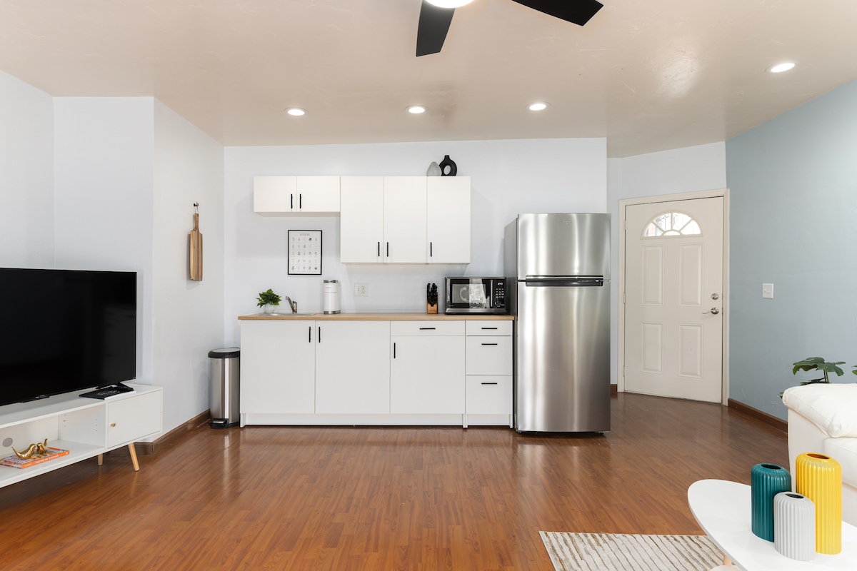 Cozy and charming, this private guest house sits in the heart of Tucson and makes a perfect home base during your visit to the Southwest! Studio layout is spacious and relaxing for 2. Fully equipped kitchen, bathroom with walk-in shower, Ghostbed mattress, and comfortable work space/fast wifi for those of you working remotely. Easy access to airport, U of A, Saguaro NP, shopping, and hiking trails. Coded entry makes it a breeze to come and go, no shared keys. Come rest at the Knest!