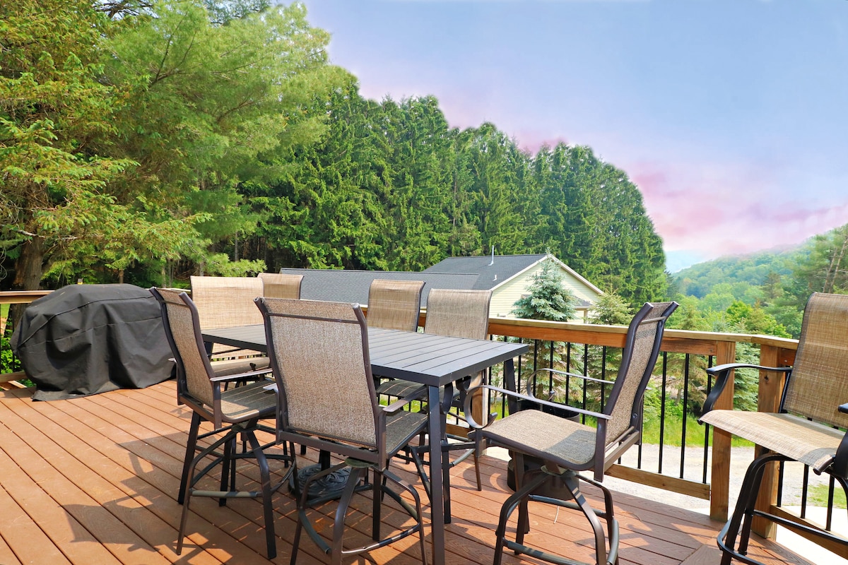 Make lasting memories at our family-friendly chalet. As you first enter our home, you will be impressed by the fabulous views of the Holiday Valley ski Slopes, and feel right at home with our cozy traditional ski chalet decor. Enjoy hanging out in the spacious great room or head outside to the expansive deck overlooking the slopes. Whether you love to ski, golf, mountain bike, hike or zip line, this 4 season property is ideally located across the street from the Yodeler Lift.