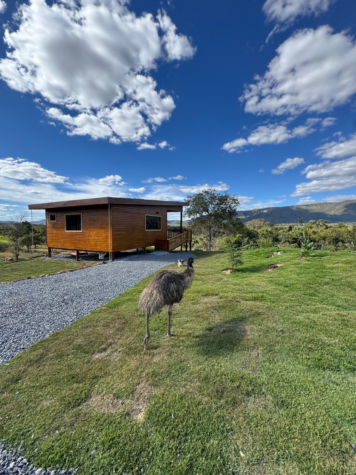 Шале в центрі Chapada dos Veadeiros. Пишний вид на природу та захід сонця. Дика природа, яку часто можна побачити: тукани, ара, рептилії, папуги та різні інші птахи. Шале в швейцарському стилі, ліжко queen-size та балкон з гамаком у антресолі, на першому поверсі 2 односпальні/дивани-ліжка, ванна кімната та обладнана кухня. Равликові сходи вимагають догляду, не підходить для людей з обмеженою мобільністю. Діти до 10 років заборонені. Дотримуйтеся правил щодо домашніх тварин і ЧИТАЙТЕ ПРО WI-FI.