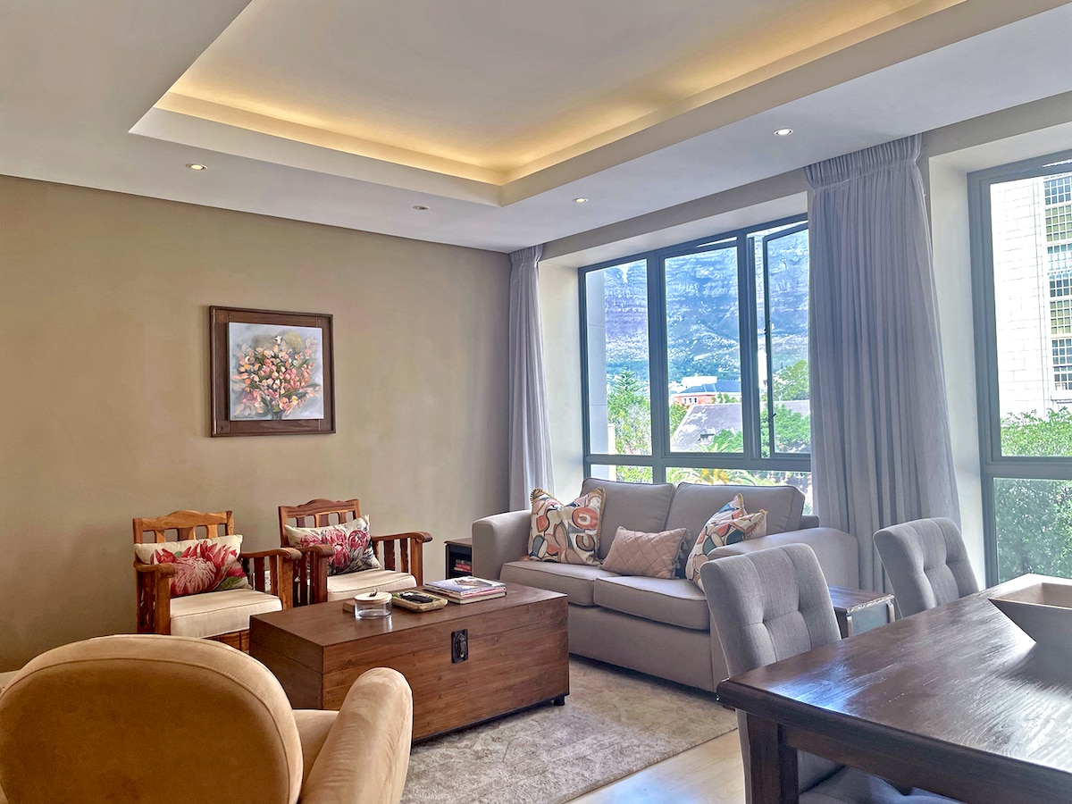 Насолоджуйтеся найдивовижнішим видом на пам 'ятку міста - Столову гору - у центрі Кейптауна! Квартира розташована на верхньому поверсі і має все необхідне для максимально комфортного перебування. Він розташований неподалік від знаменитої вулиці Клуф-стріт/Лонг-стріт з найкращими кафе та ресторанами Кейптауна, а також кількома торговими об 'єктами для повсякденного використання. Лише за 10 хвилин можна насолодитися найкрасивішими та найпопулярнішими пляжами Кейптауна.