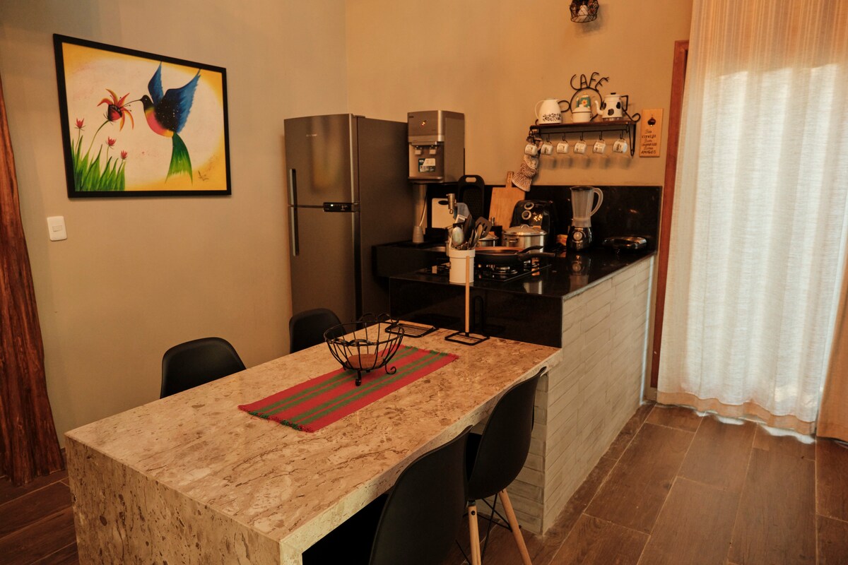 Чарівне нове шале з 2 кімнатами в закритому помешканні. Це ідеальне місце для сімей та друзів, щоб насолоджуватися відпочинком і відпочинком. Шале має чарівний і сучасний декор, оточений природою, з усім комфортом і високошвидкісним Wi-Fi. У помешканні є барбекю на відкритому повітрі, приватний пляжний тенісний корт і майданчик для пляжного волейболу, а також красивий сад для пікніка пізно вдень. Шале знаходиться в 15 хвилинах від Гуараміранги.
