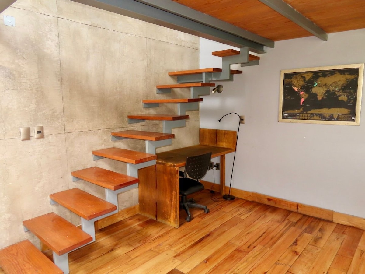 Насолодіться сучасним, елегантним і повністю приватним лофтом на другому поверсі, ідеально підходить для відпочинку або роботи в комфорті. Розташоване в тихому районі з хорошим сполученням, лише: 2 хвилини IMSS, 10 хвилин від офісу CFE (Zona Celaya), 15 хвилин від SRE (паспортного столу), Дуже близько до торгових центрів, ресторанів та основних доріг. У цьому помешканні є: Зручне повноцінне ліжко Обладнана кухня (плита, холодильник, кавоварка, посуд) Ванна кімната