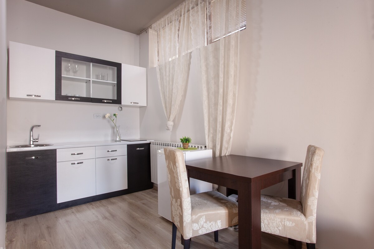 Moodeight 8 is located in a brand new building in a quiet area. The apartments features sitting and dining area, fully equipped kitchen and a bathroom. It has two bedrooms for maximum number of guests 4 + 2 kids up to 6 years. It features a balcony with cosy furniture. The apartment has a maximum number of elements to help our guests to feel just like home.