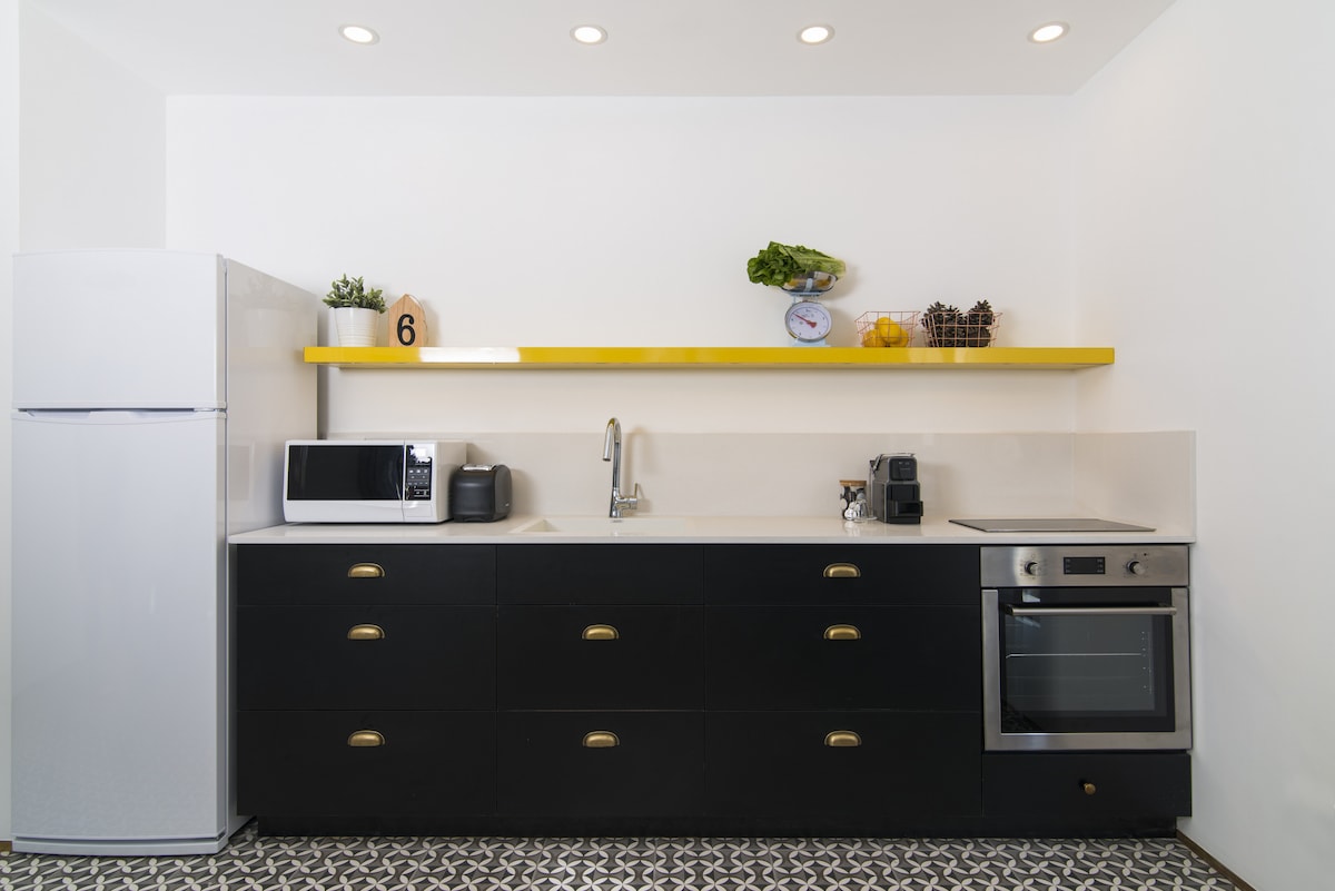 Насолоджуйтеся легким доступом до цієї надзвичайно добре оздобленої студійної бази. Включає все необхідне для ідеальної відпустки. Зручна подвійна обідня зона та повністю обладнана кухня. Ексклюзивна ванна кімната та душ. Ідеально підходить для пар!! У їдальні та кухні є мікрохвильова піч та холодильник. Студія розташована в багатоквартирному будинку, який здебільшого використовується для туристів. Вхід до коридору, що веде до квартири, здійснюється через код, який ви отримаєте після бронювання. Найкраще місце для відвідування Тель-Авіва на його найкращій стороні. Скрізь.