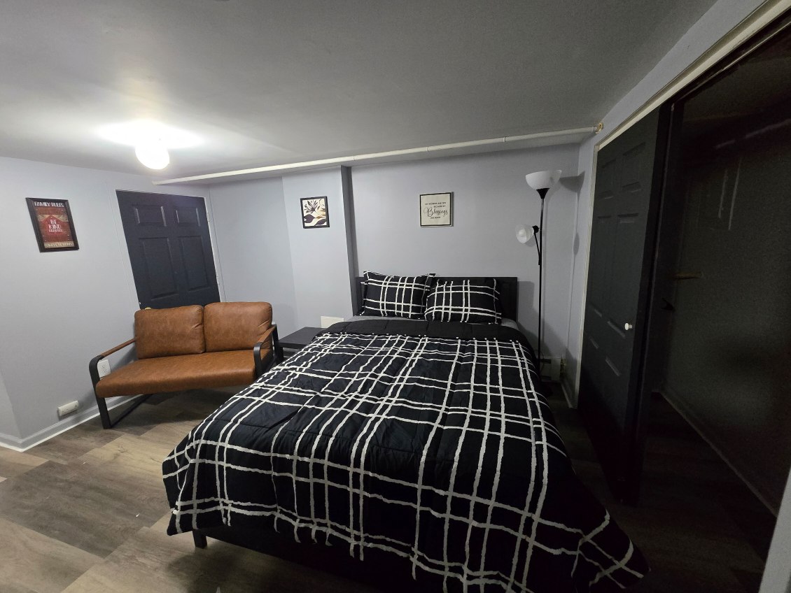 Забронюйте цю чудово відремонтовану квартиру з 1 спальнею! Добре призначені для довготермінових бронювань або швидких подорожей. ~ Пропанова чаша для багаття ~ Приватний задній двір, залитий сонцем. ~ Повноцінна кухня ~ Вітальня з диваном/футоном для третього гостя ~ Ліжко queen-size ~ Ванна з туалетом ~ Паркування на вулиці для 1 автомобіля. Це квартира на першому поверсі, яка отримує багато природного освітлення. Це не підвал! :) Розташоване в тихому районі неподалік від усіх основних автомагістралей. SmartTV. Немає кабельного телебачення. Понад 21