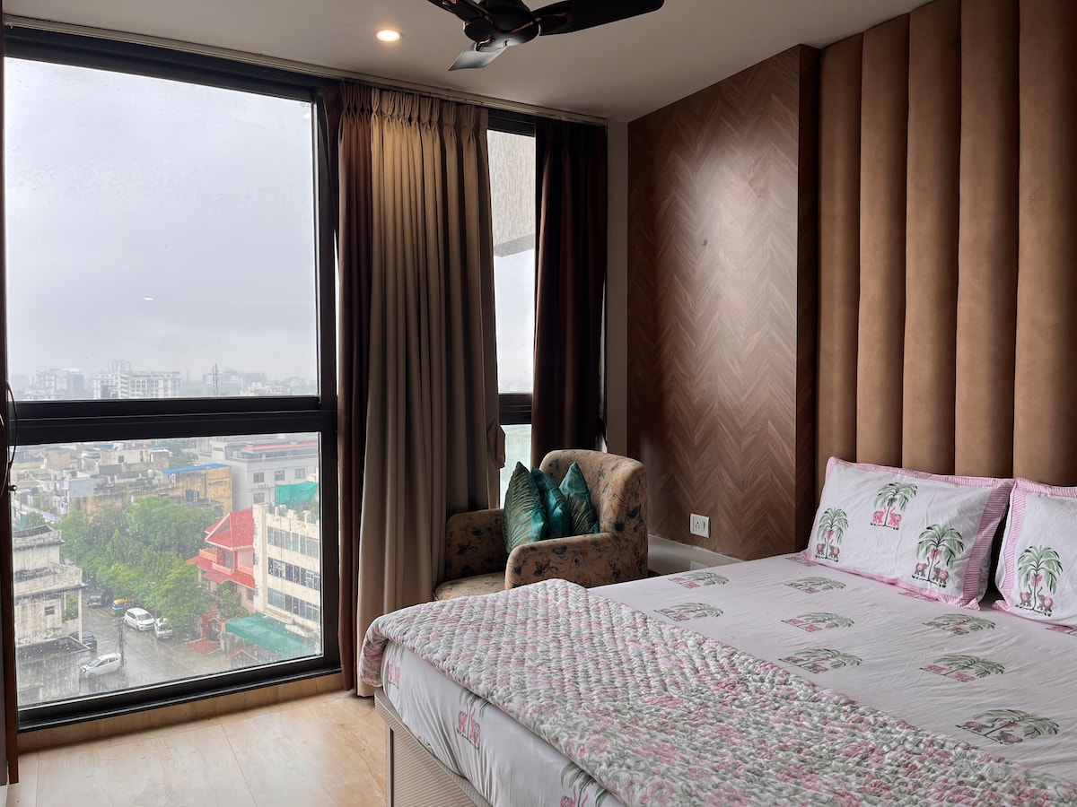 Розкішна квартира площею 600 кв. футів з 1 спальнею в ЦЕНТРІ МІСТА в тихому VIP-районі під назвою C-SCHEME * Безкоштовний Wi-Fi – швидкість 100 Мбіт/с * Ідеально підходить для 3 осіб. * 45-дюймовий телевізор — Netflix, Hotstar, YouTube * Штори для повноцінного сну * Uber та Ola за 2 хвилини. Близькість до громадського транспорту всього 50 метрів ходьби. 🚕🛺 * Центральний парк лише в 1 км 🏃 * Старе місто Джайпур знаходиться всього за 1,2 км. 🛍️ * Перегляньте мій путівник для рекомендацій щодо їжі, кави тощо ✈️ - 7,8 км 🚂 - 2,6 км 🚌 - 3,6 км