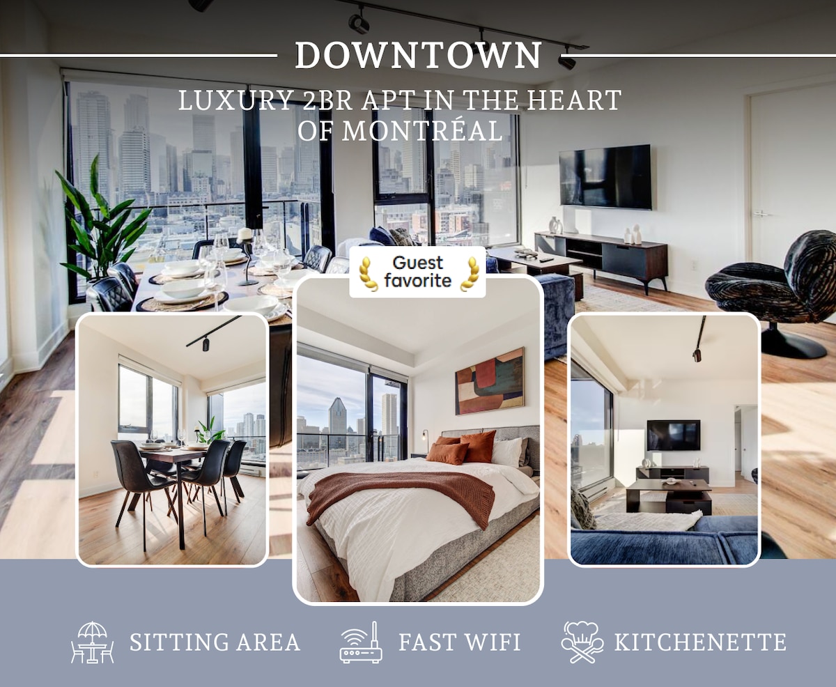 Кондомініум розташований в центрі міста з прямим доступом до Bell Center! Насолоджуйтеся перебуванням з розкішшю та комфортом за допомогою повністю мебльованої кондомініуму з однією спальнею, яка включає безкоштовну каву, тостер, чайник та всі кухонні інструменти. Сауна, басейн, тренажерний зал з численними вагами та машинами, вікна, ігрова кімната, вітальня та тераса з декількома барбекю у вашому розпорядженні! Насолоджуйтеся безкоштовним підземним паркінгом і 1 хвилиною доступом до системи метро, не виходячи на вулицю! Netflix включено