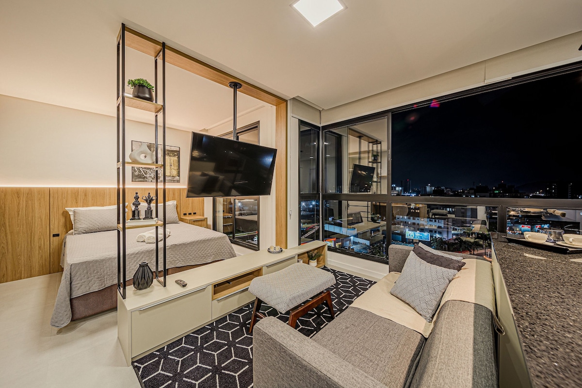 Нова студія, укомплектована, у найкращому районі Жуанвіль (Centro / America). Отримайте комфорт готелю, купуючи приватність і комфортну квартиру. Поруч із найкращими супермаркетами, ресторанами, центрами проведення заходів. Усе можна зробити пішки або всього за кілька хвилин на автомобілі. Ідеально підходить для відпочинку, туризму або бізнесу.