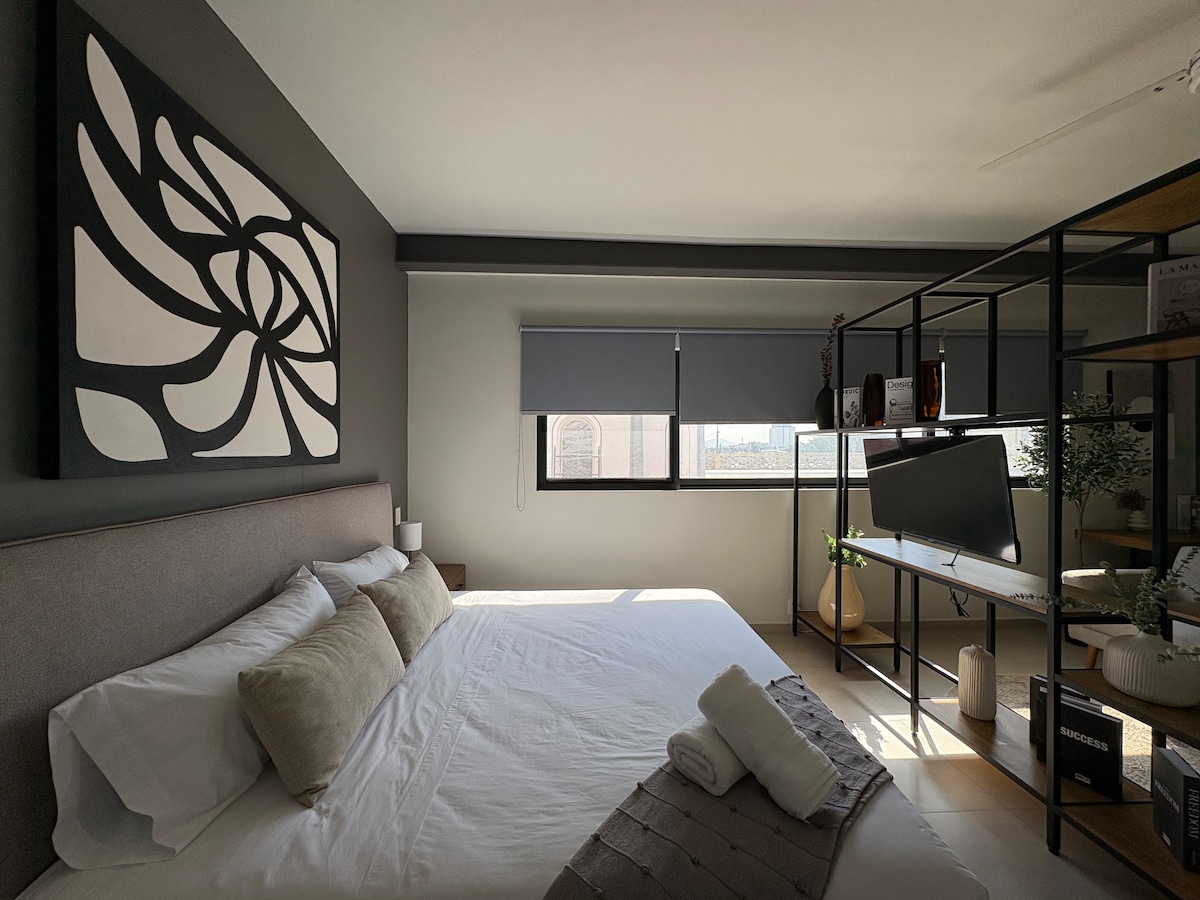 - басейн на 22-му поверсі; - Красивий тренажерний зал з видом на місто. - Повністю обладнано для тривалого перебування. - Доступна парковка (за додаткову плату). - Послуги з прибирання: раз на тиждень для бронювань на 7 ночей і більше. Незалежно від того, чи ви подорожуєте для роботи, чи для відпочинку, вам сподобається ця сучасна студія в абсолютно новій розкішній вежі в районі Провіденсія, недалеко від торгового центру Midtown Jalisco.