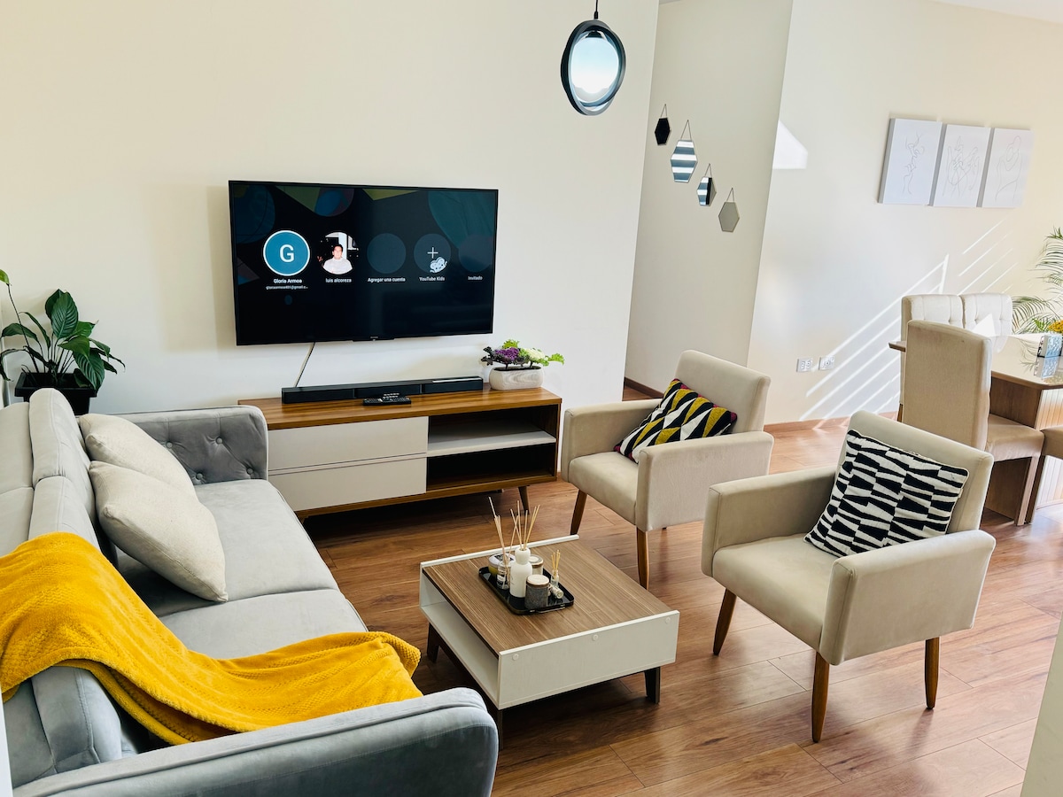 Ласкаво просимо до комфортного помешкання в центрі Кочабамби! 🛋️ Помешкання: Площа близько 40 кв. м Дуже зручне ліжко розміру «king-size» Яскрава та сучасна вітальня Повністю обладнана кухня (ідеально підходить для тривалого перебування) Пральна машина Швидкий і стабільний Wi-Fi Тихий простір для відпочинку або роботи 🎯 Ідеально підходить для: Керівники, які шукають спілкування та комфорт Пари, які бажають дослідити місто Туристи, які цінують розташування помешкання та приватність