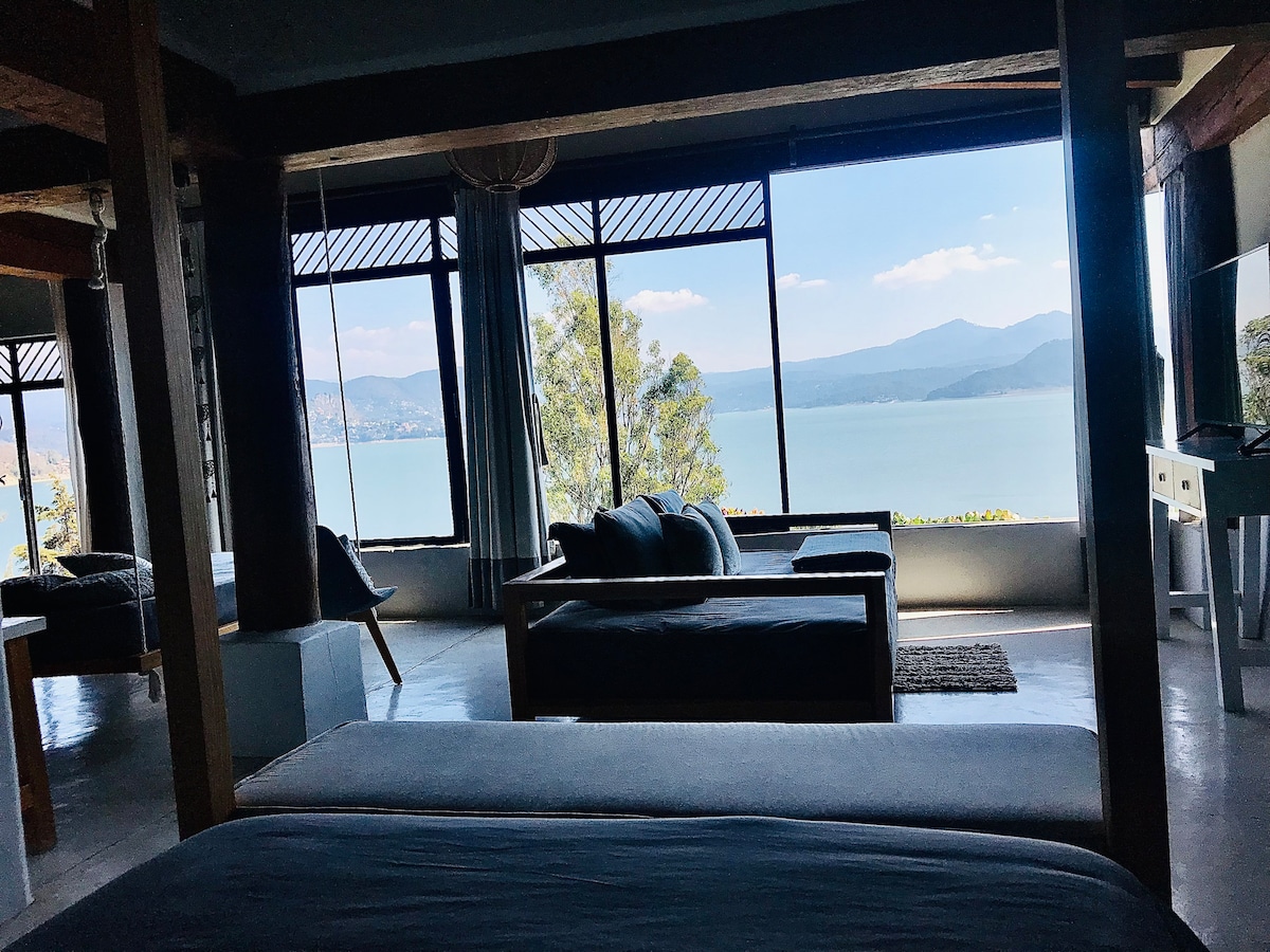 Disconnect from the routine in this unique and relaxing accommodation. A beautiful little villa, with a huge garden, private terrace, view of the lagoon and the flowers field, fireplace, patio with grill and wood oven. Located 10 minutes from Valle de Bravo in a beautiful area, full of nature and tranquility. Beautiful little place for you, for couples, friends or family and pet. The best option for you, book for a month, great for home office, per week or weekend.