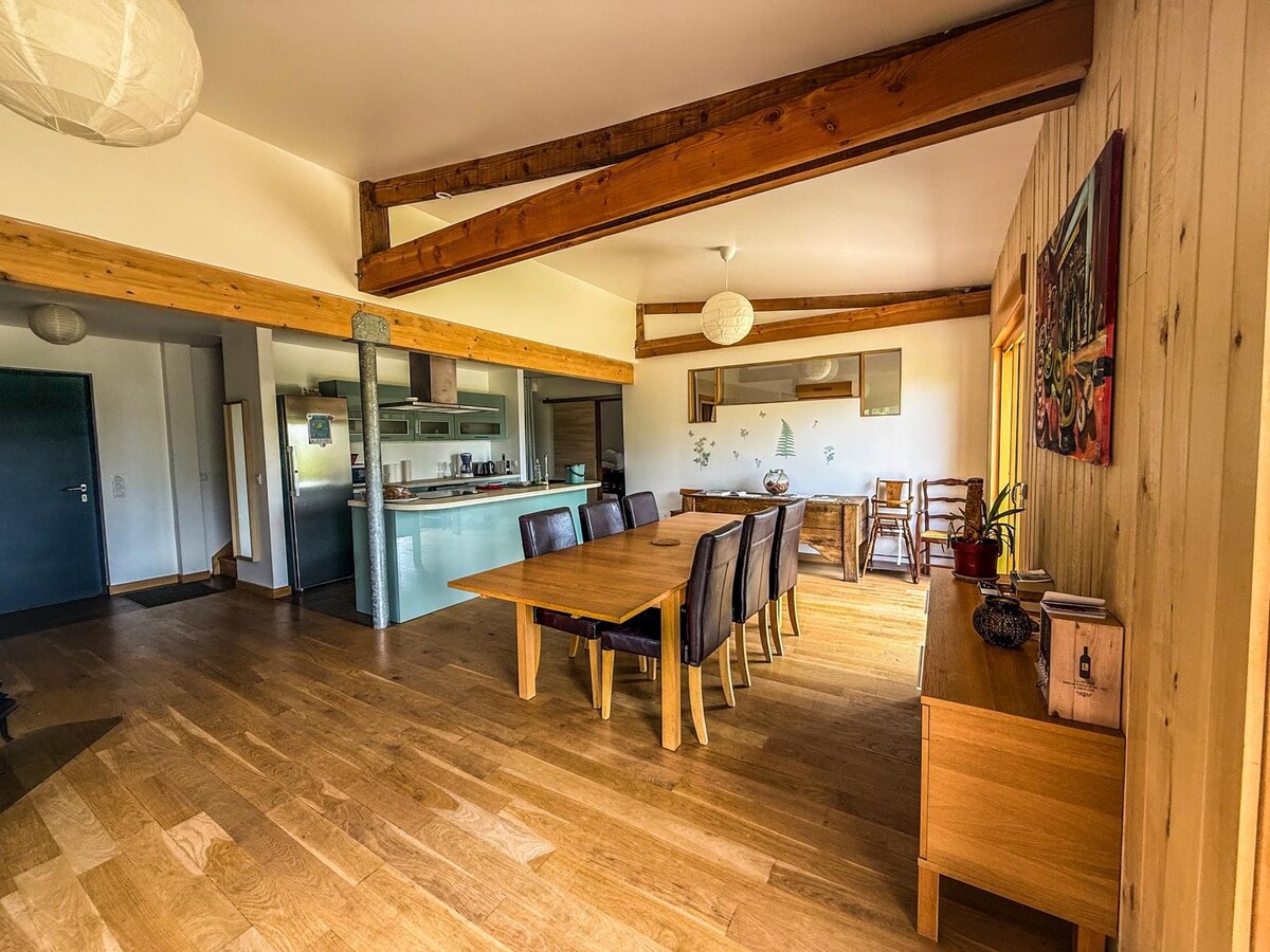 Cool, comfortable and spacious (90m2) home on 2 floors. Large kitchen , lounge and terrace on street level and fabulous 1 double bedroom open plan room on the 2nd floor. A converted grange perched on a mountain in a medieval village 16 minutes from the A6, this peaceful home makes an ideal stop over for holidays in the Alps or south of France. Please note - there is a studio apartment with its own entrance on the lower ground floor - rented separately.