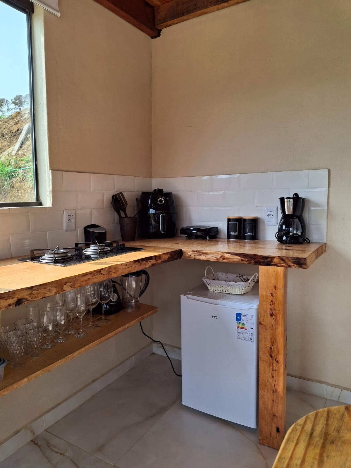 Моє помешкання — це дуже нове затишне шале з обладнаною кухнею, ванною кімнатою та балконом на першому поверсі, а на другому поверсі — спальня з двоспальним ліжком та односпальним ліжком та тераса з неймовірним видом... Ми знаходимося за 36 км від міста Ітамонте. Приїжджайте відпочити та розслабитися посеред природи та гір Мантікейри. Ми знаходимося в 17 км від національного парку Ітатіая, високо в Агульяс-Неграс. І недалеко від кількох красивих водоспадів річки Айуруока.