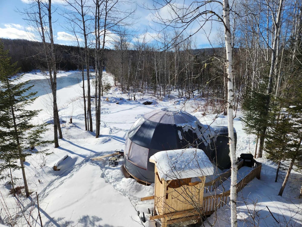 Помешкання розташоване в густому кедровому лісі і пропонує вам унікальний глемпінг. Місткість 2 осіб. Міні-кухня повністю обладнана, і ви будете спати в зручному ліжку queen-size з ковдрою. Компостний унітаз у помешканні та доступ до санітарного блоку, щоб насолоджуватися окремими ванними кімнатами, а також водопостачанням. Парковка в декількох метрах від під 'їзної доріжки та зрубу. Ми знаходимося в 20 хвилинах їзди від Карлтон-сюр-Мер.