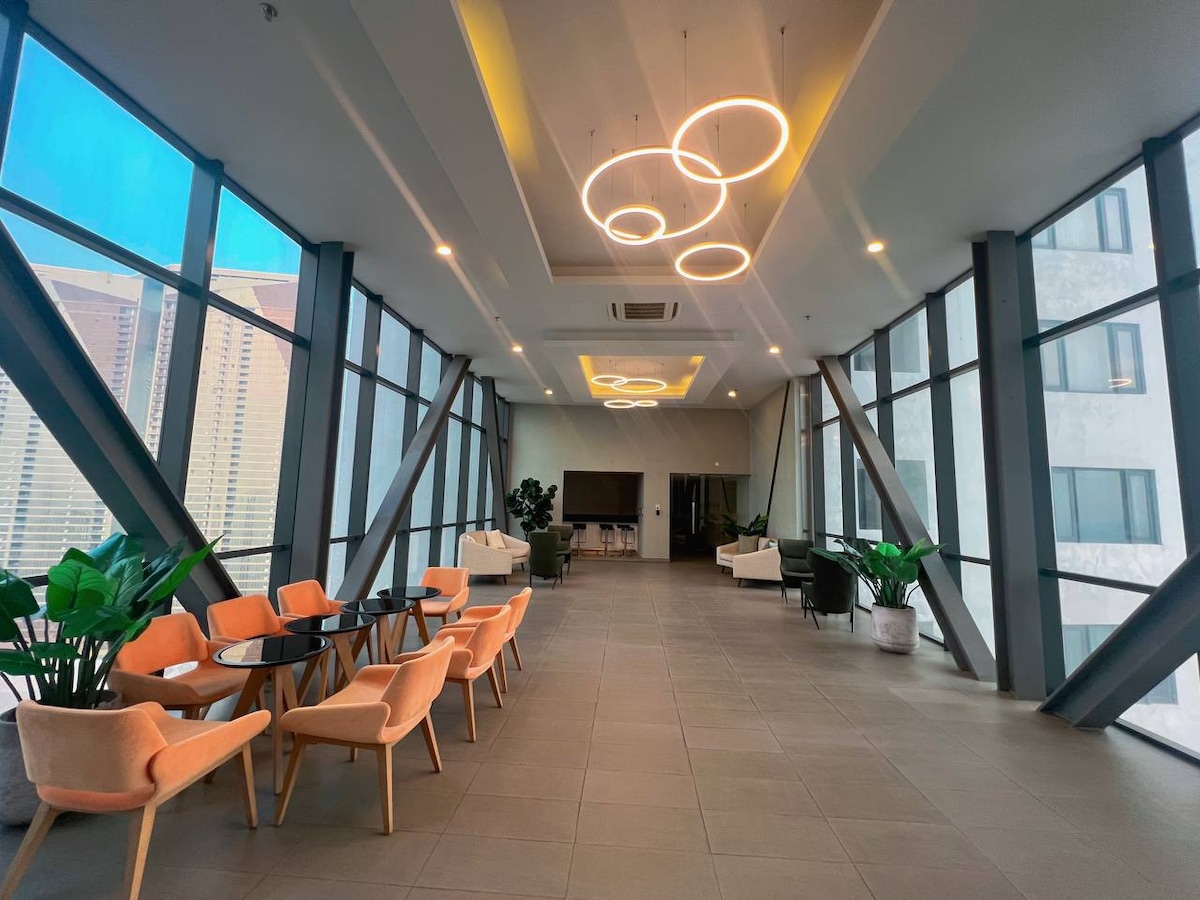 Наша елегантна резиденція з 2 спальнями та 1,5 ванними кімнатами повністю облаштована відповідно до готельних стандартів і розташована на високому поверсі з приголомшливим панорамним видом на місто. За кілька хвилин від NagaWorld і Koh Pich, ідеально підходить для бізнес-мандрівників, пар, сімей або тривалого перебування. Включає простору вітальню, сучасну кухню, високошвидкісний Wi-Fi, пральну машину, окрему ванну кімнату та гостьовий туалет. Зручності включають праску, фен, чайник, холодильник, рушники та туалетні засоби для комфортного розкішного перебування в Пномпені.