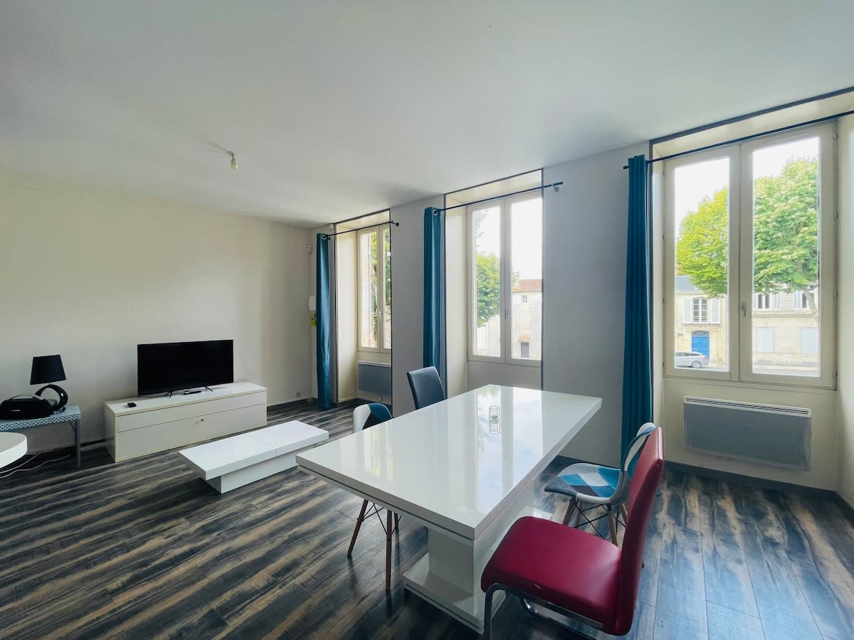Мебльований класифікований 4*, центр міста з видом на Шарант, повністю відремонтований, пропонуючи всі зручності, включаючи приватний Wi-Fi, оборотний кондиціонер і опалення, посудомийну машину, пральну машину, сушильну машину, Nespresso, кавоварку, мікрохвильову піч та традиційні духовки. 1 спальня з ліжком 140x190 см, 1 диваном-ліжком 160x200 см, 1 ванною кімнатою з окремим туалетом, 1 робочий стіл із USB-з 'єднанням включено. Дозвольте собі насолодитися спокоєм Шаранти з квартири та її великою терасою, обладнаною вуличними меблями.