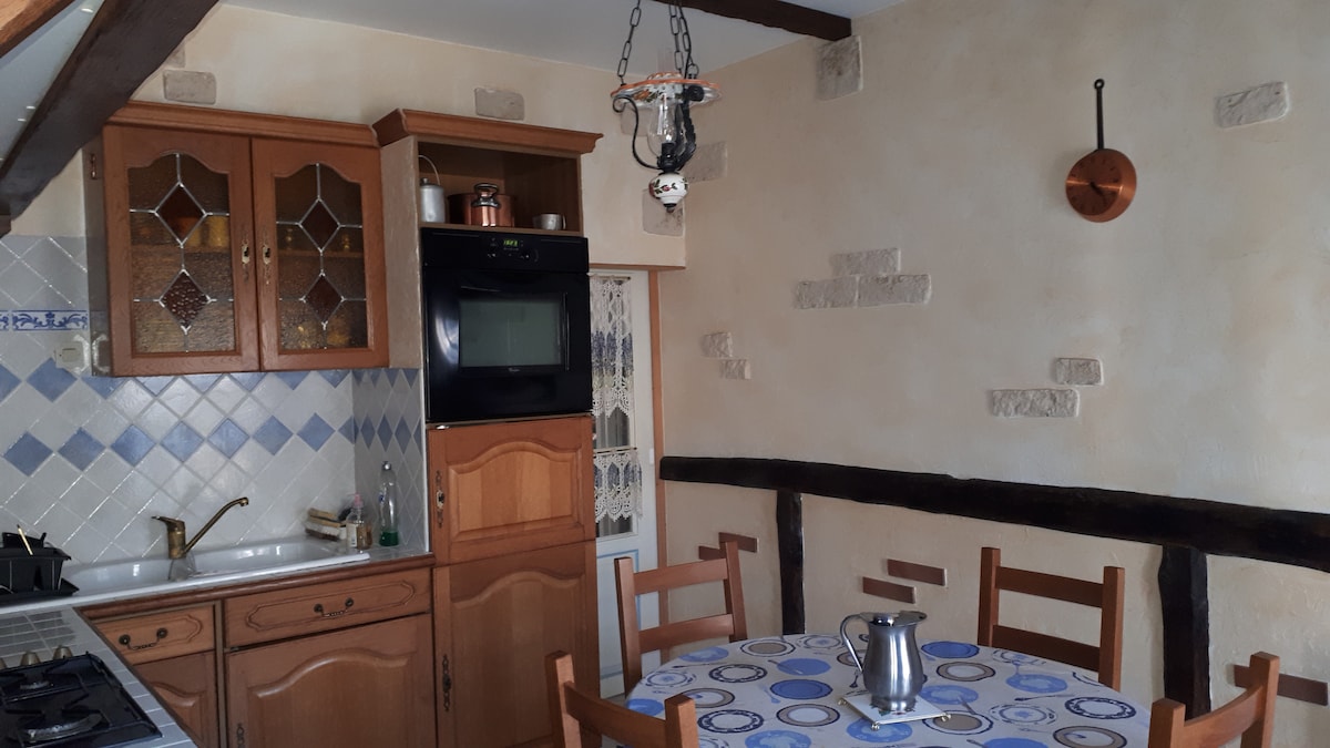 Якщо ви любите тварин, спокій, природу. Ласкаво просимо до нашого помешкання! 35 хвилин від Puy du Fou, Mervent, Poitevin marsh, 1 година від узбережжя Ванді. Ідеально підходить для 2-4 осіб, може розмістити не більше 4 осіб. На першому поверсі обладнана кухня з телевізором/лавкою, ванною кімнатою та туалетом. Нагорі, CH з 140 ліжками, 2-е місце зі зручним диваном-ліжком 140. Круті сходи. Приватна тераса з кухнею на відкритому повітрі, є планча. Вихід до саду з відпочинком. Паркувальне місце.