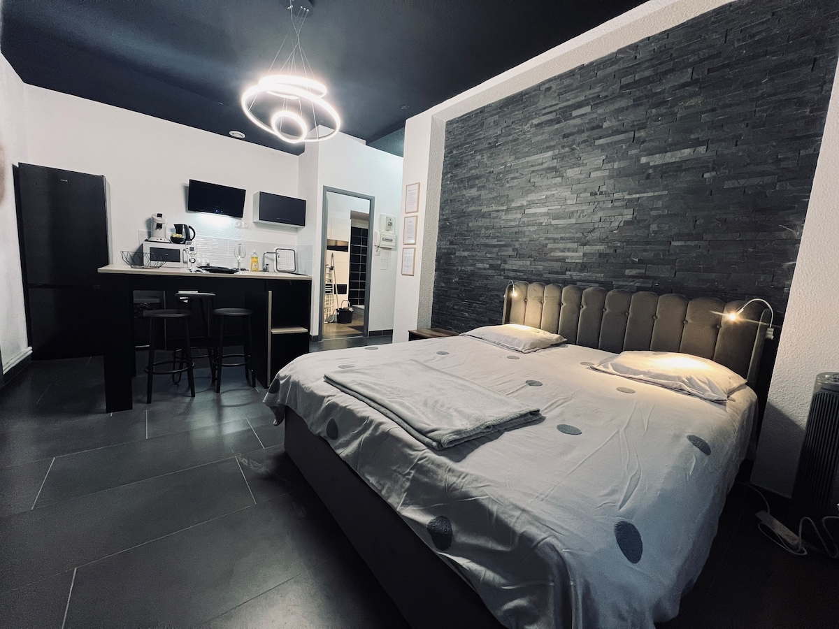 Ідеально підходить для відпочинку або професійного перебування, ця яскрава та повністю обладнана квартира має затишну вітальню з диваном-ліжком, підключеним телевізором та обладнаним робочим місцем (робочий стіл, ергономічне крісло, високошвидкісне оптоволоконне з 'єднання). Вітальня відкрита для повністю обладнаної кухні. Нічна спальня з двоспальною кімнатою з матрацом розміру «queen-size». Ванна кімната з ванною. Розташована в тихому та безпечному районі, в декількох хвилинах ходьби від центру міста, залізничного вокзалу та магазинів, ресторанів.