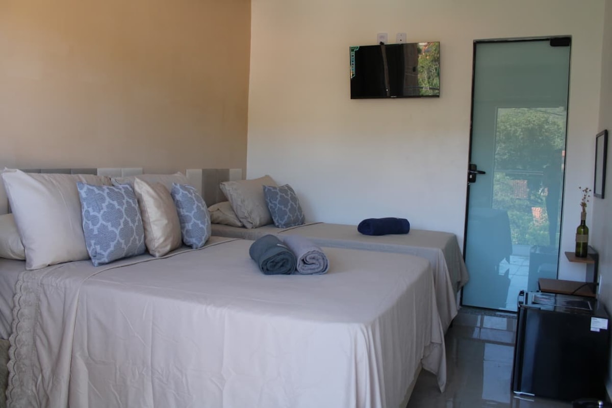 Pousada Donalu пропонує приватні апартаменти, обладнані: - Двоспальне ліжко. - Постільна білизна (постільна білизна, наволочки та ковдра). - Банні рушники. - Окрема ванна кімната. - Міні-бар. - Стельовий вентилятор. - Балкон із Rede. - Місце для одягу/валіз. Зовнішня зона: У нас є велика кухня на відкритому повітрі, яка доступна для наших гостей. Розташування: Ми розташовані на вулиці Rua Harmonia, дуже близько до туристичного центру Вале-ду-Капао. У нас є приватна парковка всередині помешкання.