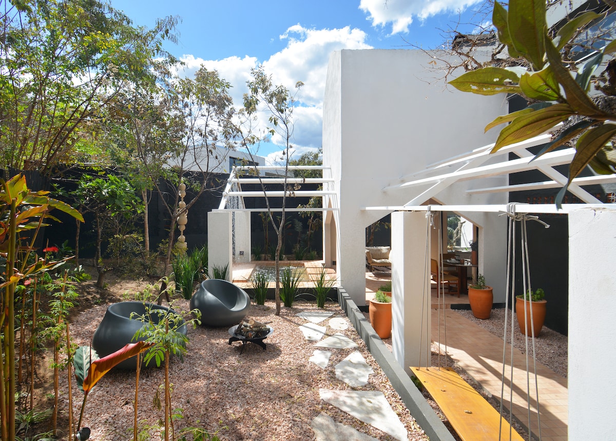Localizada no coração da Chapada dos Veadeiros, onde o Cerrado e as montanhas se faz paisagem. A apenas 900m da avenida principal. A casa foi projetada com o intuito de proporcionar moradia refugiada ao silêncio e natureza. Ainda cheira a nova e o jardim que está sendo semeado traz o Cerrado para dentro do quintal. Conta com ambientes espaçosos, modernos e aconchegantes, incluindo áreas que proporcionam experiências únicas e oferecendo todo o conforto de "sentir-se em casa, fora de casa".